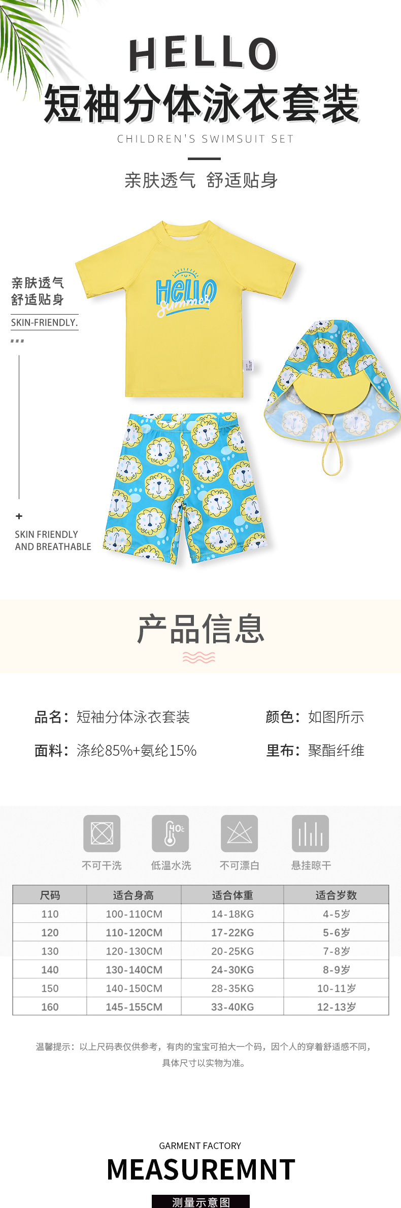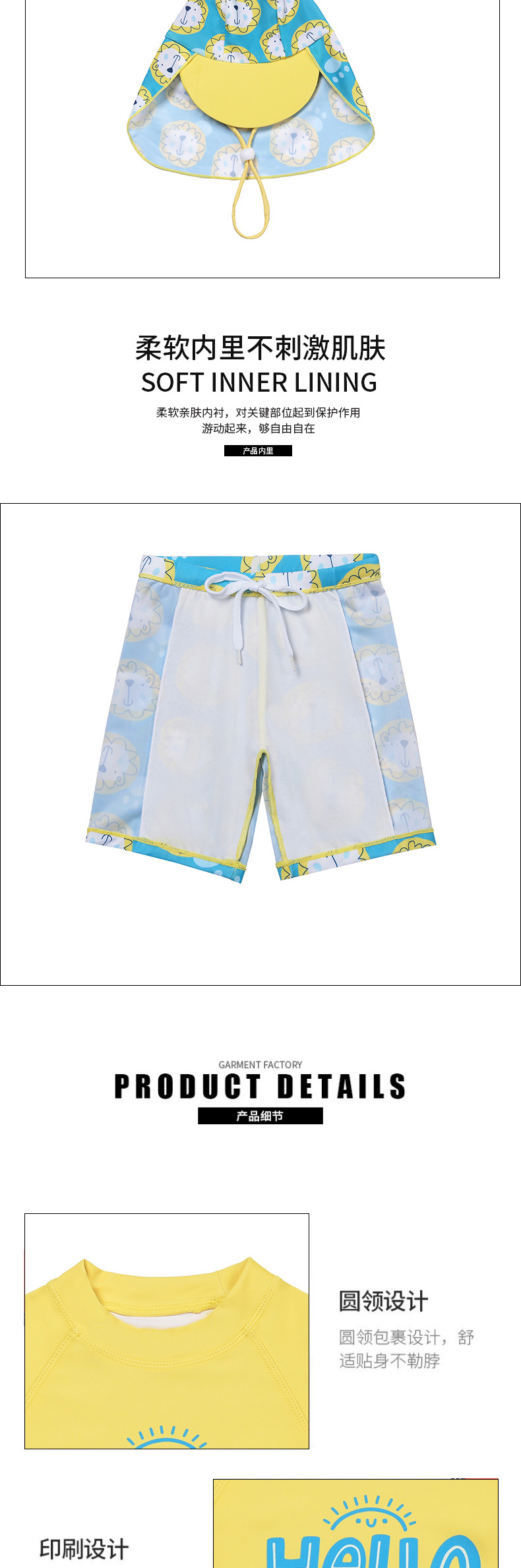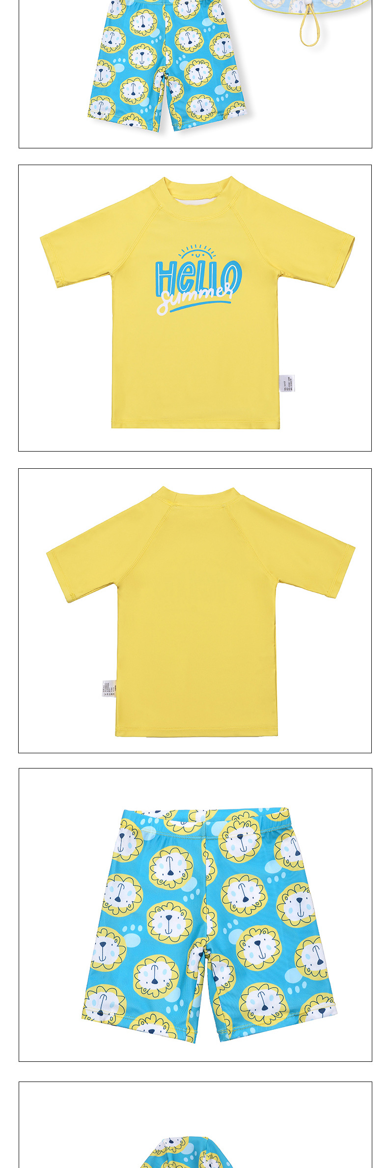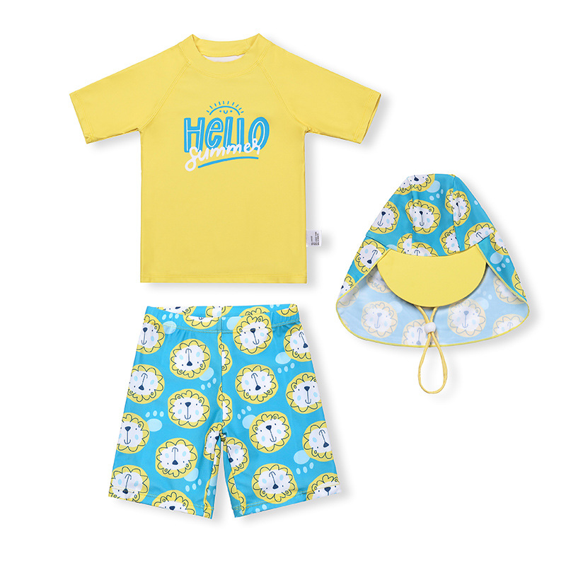 어린이 수영복 소년 반팔 새로운 스타일 사자 머리 대형 어린이 자외선 차단제 수영복 유행 소년 분할 수영복 세트