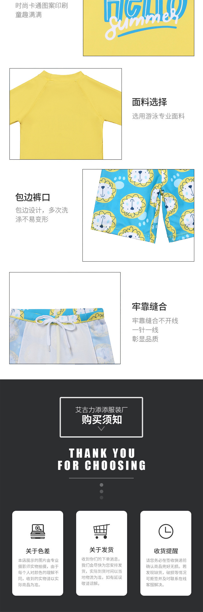 어린이 수영복 소년 반팔 새로운 스타일 사자 머리 대형 어린이 자외선 차단제 수영복 유행 소년 분할 수영복 세트스토어 가기