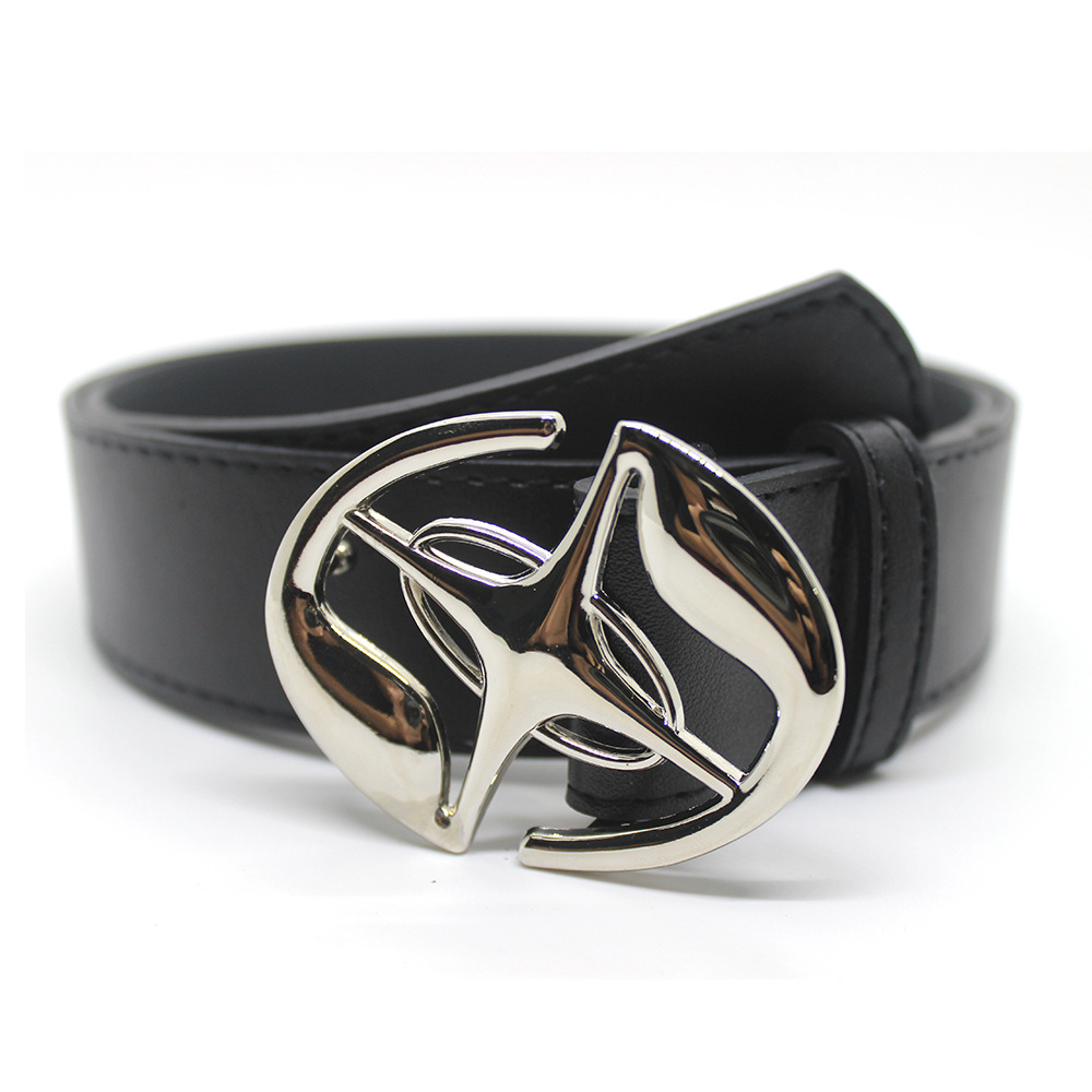 2023 새로운 한국 스타일 인 스타일 남성과 여성 복고풍 패션 올매치 퓨어 블랙 벨트 로고 메탈 버클 벨트