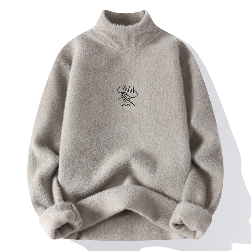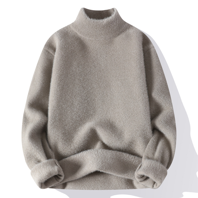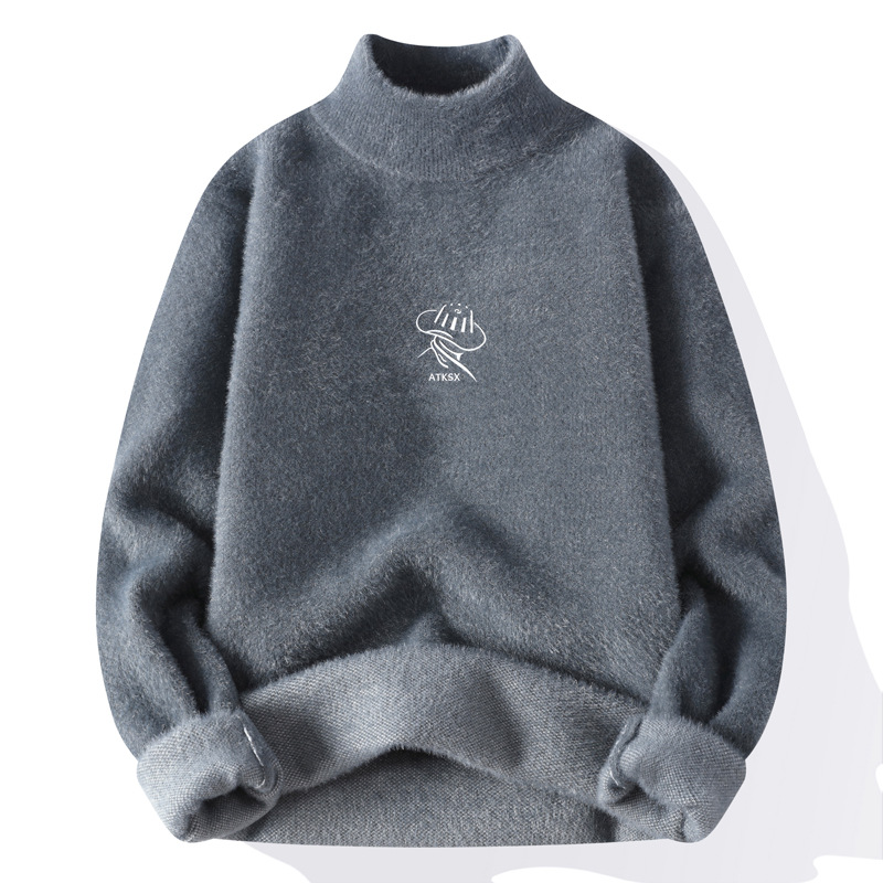 남성용 밍크 벨벳 스웨터 두꺼운 2025 겨울 남성용 하프 터틀넥 따뜻한 스웨터 청소년 트렌디 니트웨어