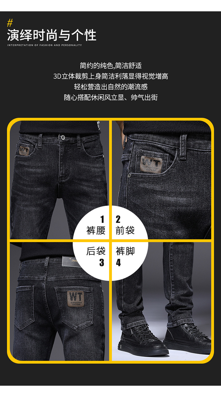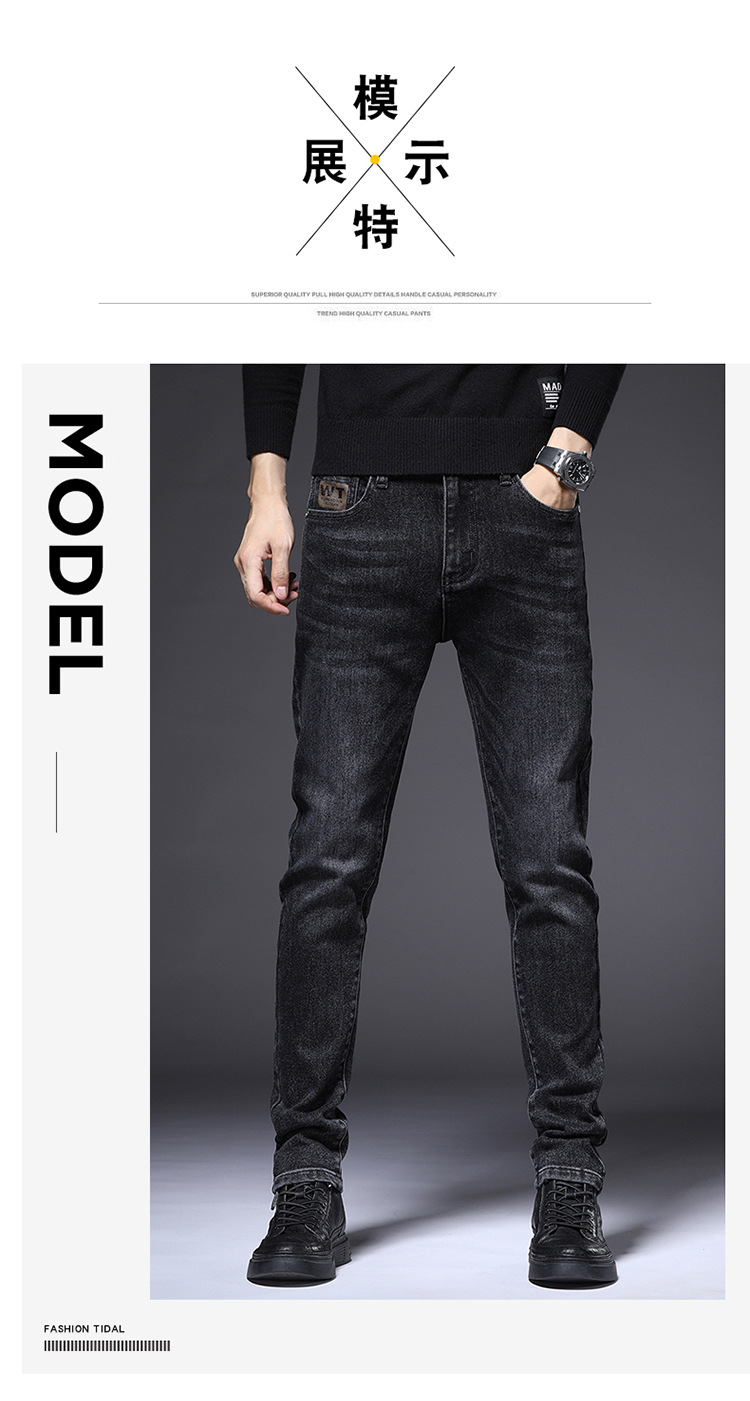 가을과 겨울 새 청바지 남성용 스트레치 스키니 한국식 슬림핏 패셔너블한 다크 십대 슬리밍 캐주얼 롱 팬츠스토어 가기
