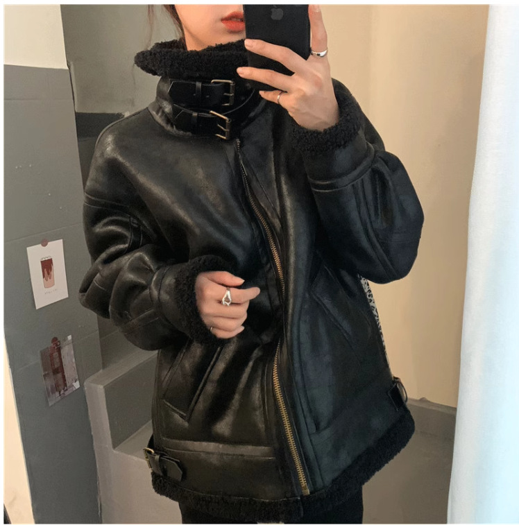 여성을위한 모피 통합 양털 코트 2025 새로운 겨울 스웨이드 오토바이 재킷 양털 코튼 코트스토어 가기