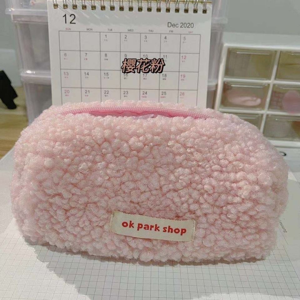일본어 인 필통 양고기 양모 화장품 가방 봉제 보관 가방 하이 컬러 가치 인터넷 인기 귀여운 문구 가방 대용량스토어 가기