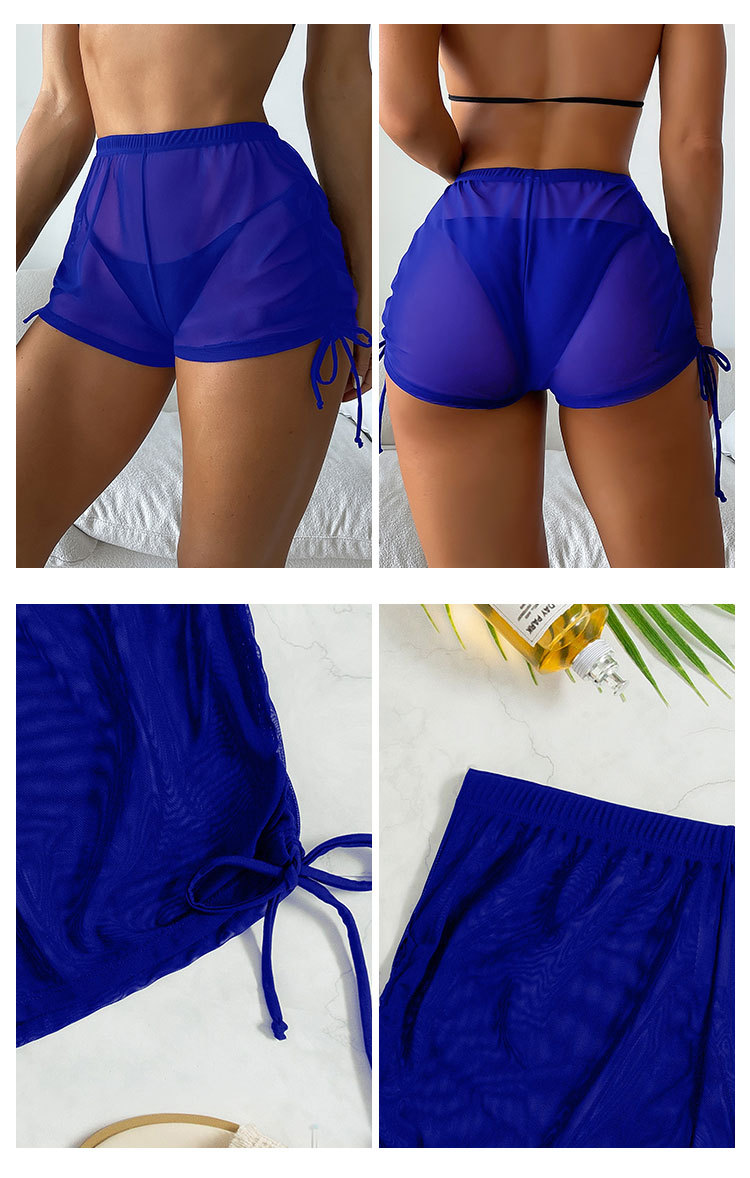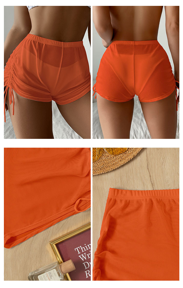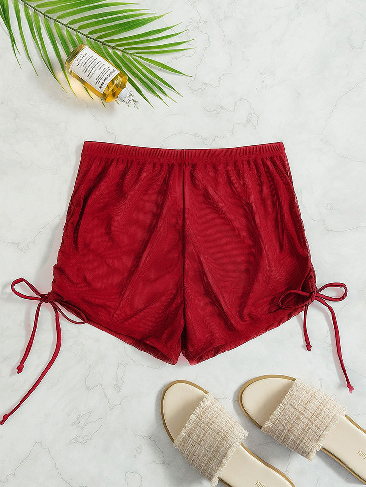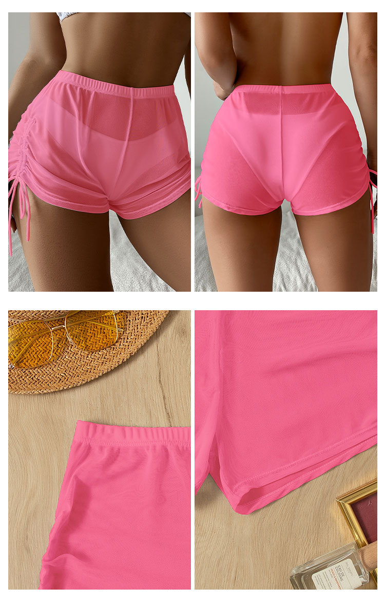 2026년 신상품 알리익스프레스 유럽 및 미국 섹시한 단색 네모형 투명 메쉬 드로스트링 비치 수영복 비키니 반바지스토어 가기