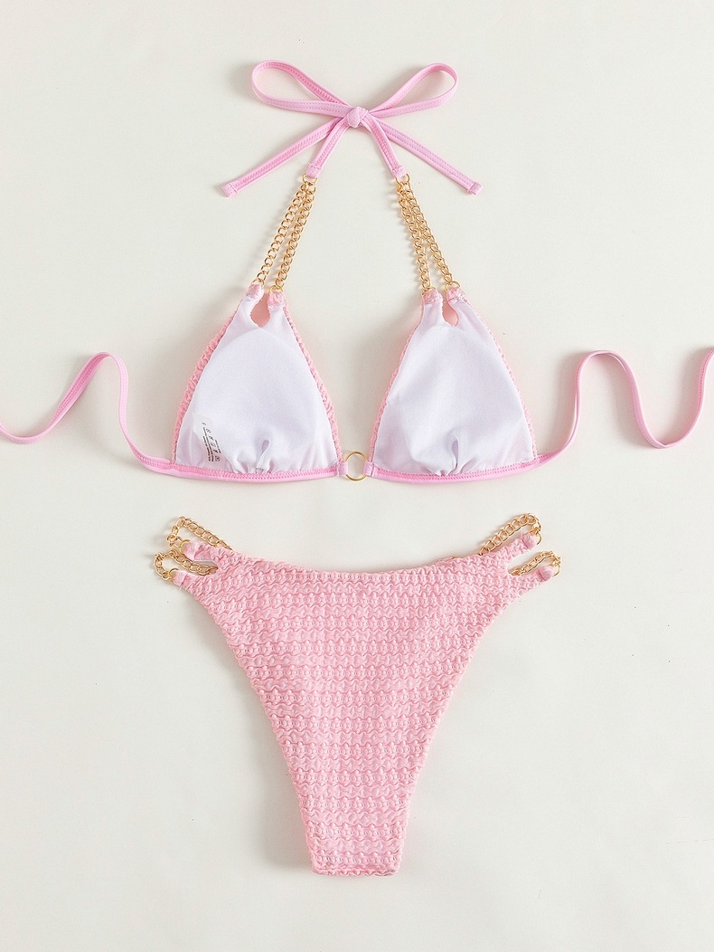아마존 2025 새로운 유럽과 미국의 비키니 섹시 체인 수영복 여름 스트랩 백리스 스플릿 비치 수영복 여성