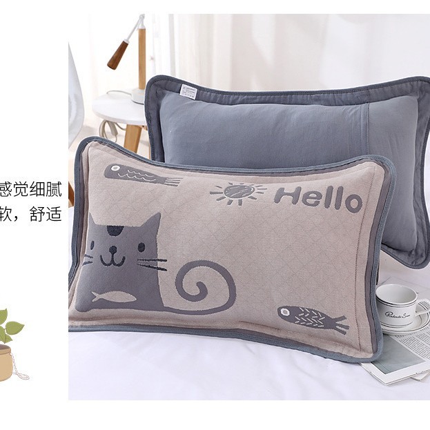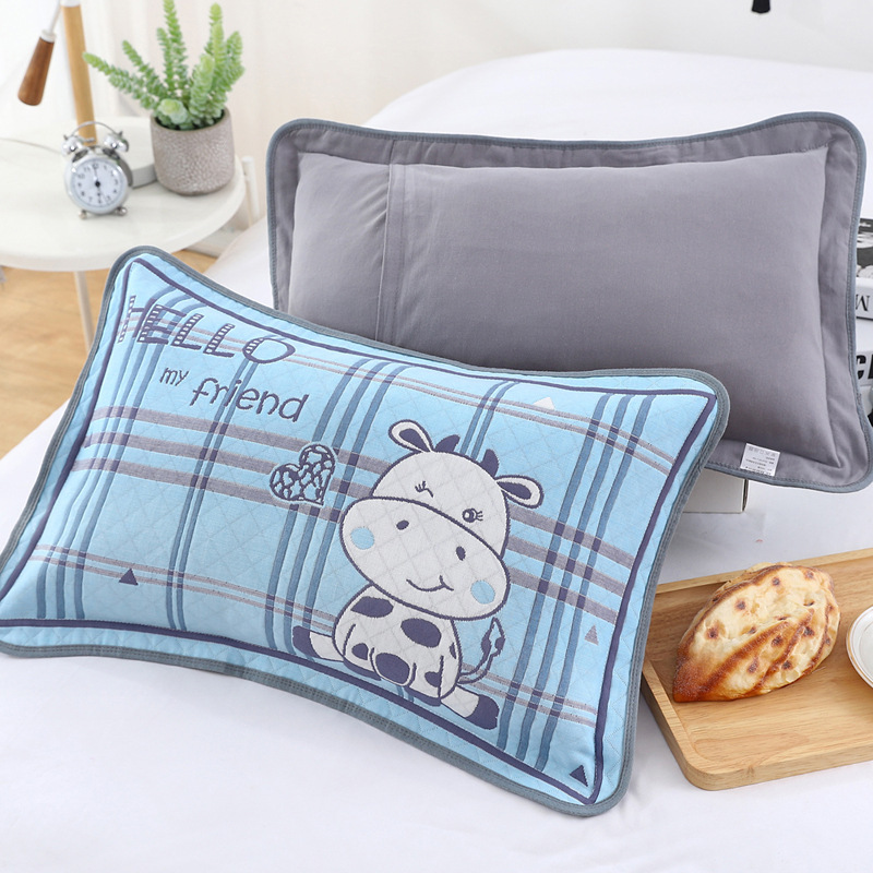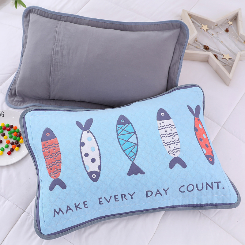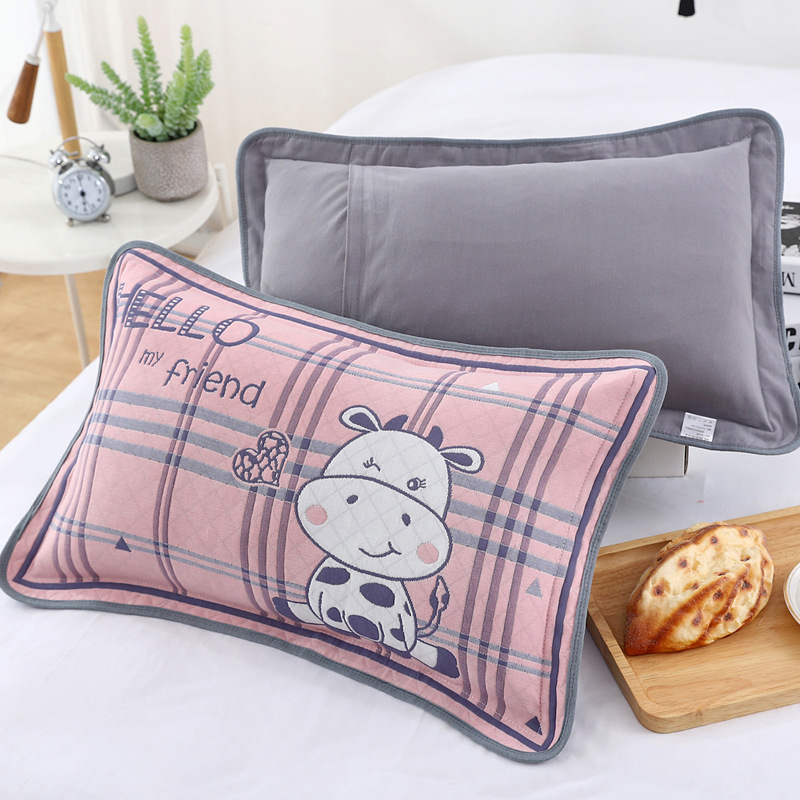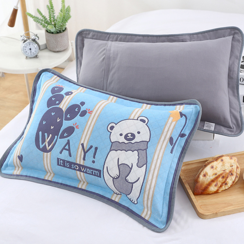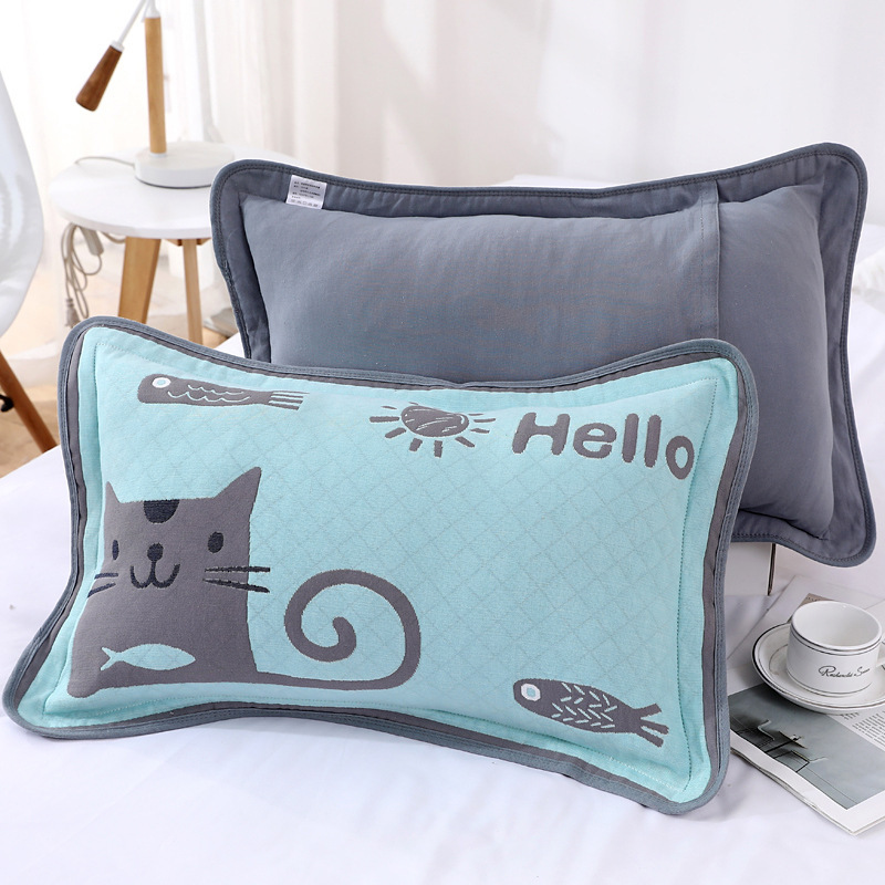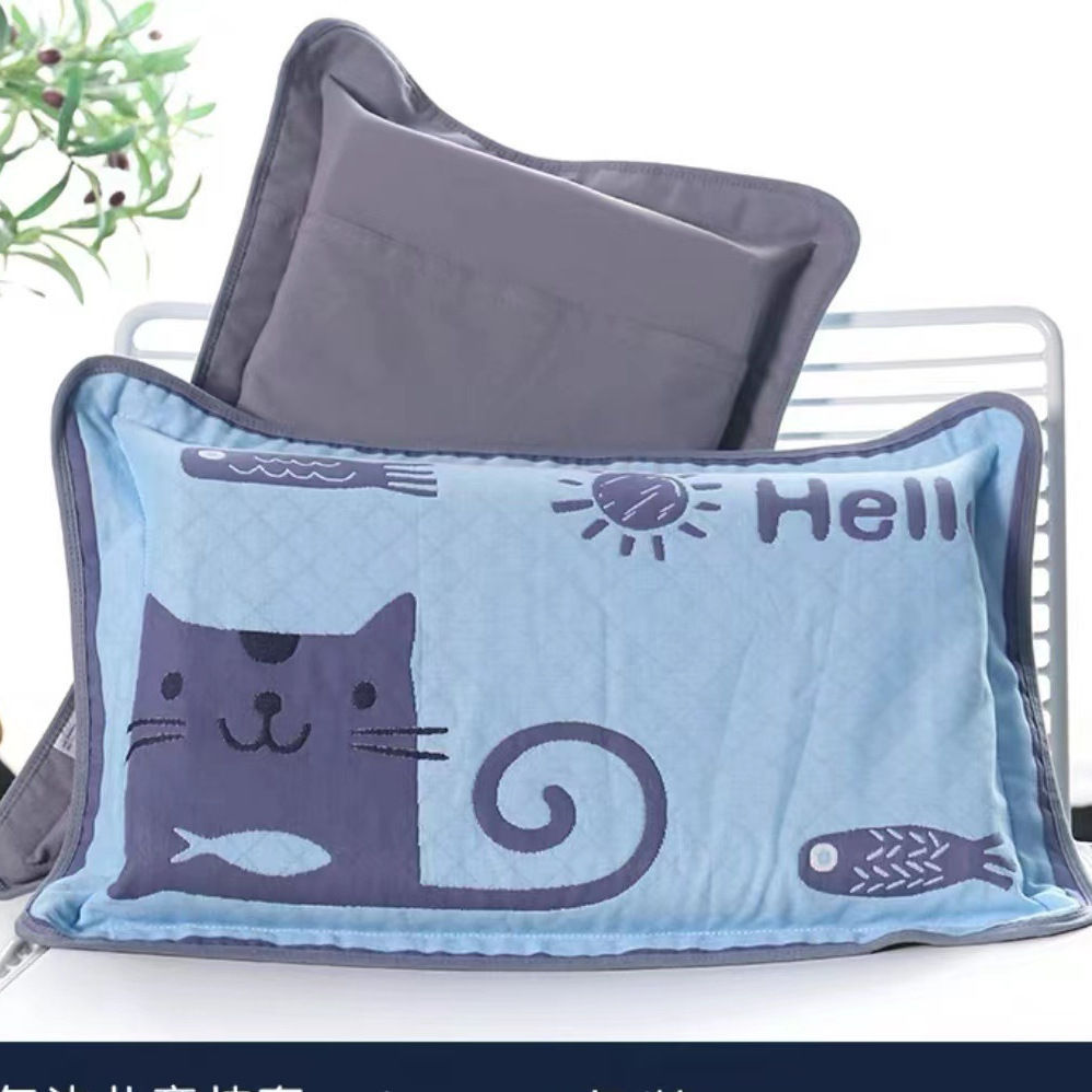어린이 베갯잇 중형 고급 35*55 면 고급 거즈 6 층 베개 없음 아기 통기성 땀 흘림 가장자리 베갯잇스토어 가기