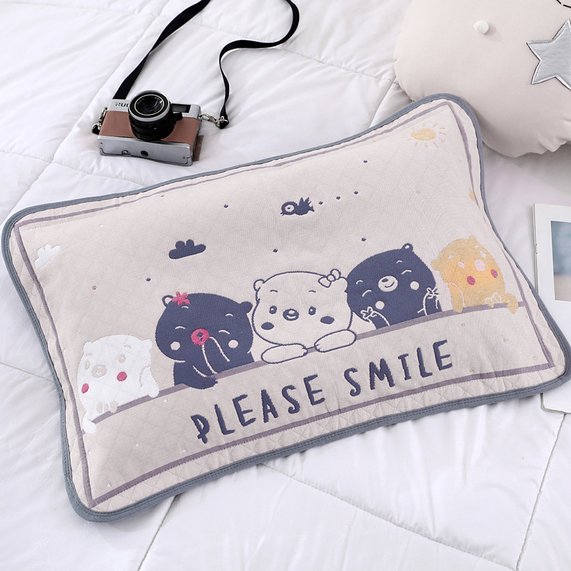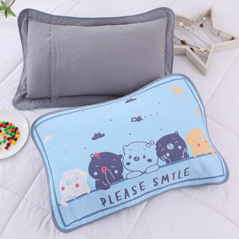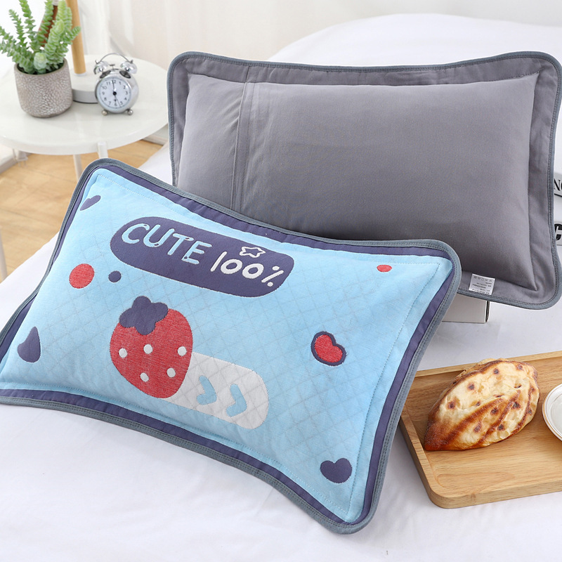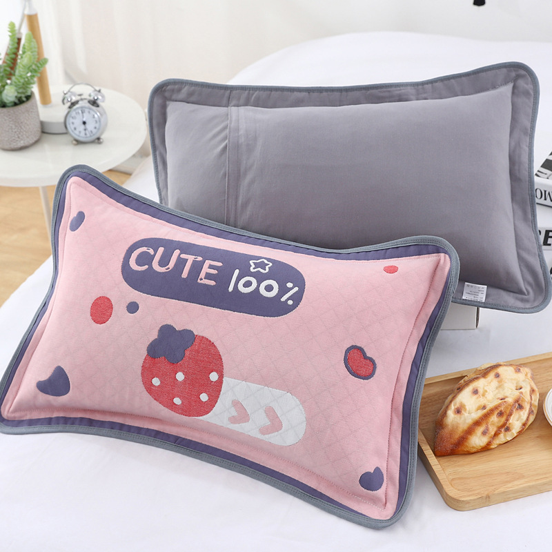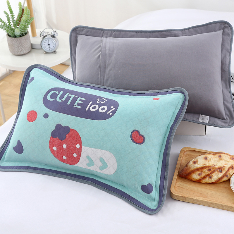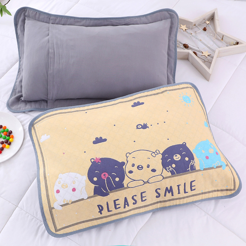 어린이 베갯잇 중형 고급 35*55 면 고급 거즈 6 층 베개 없음 아기 통기성 땀 흘림 가장자리 베갯잇