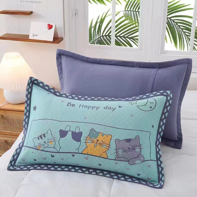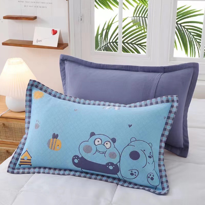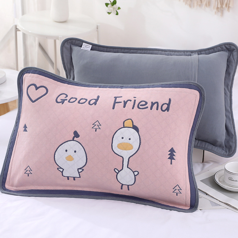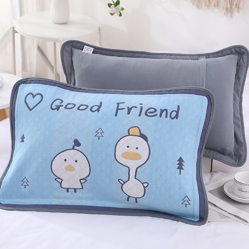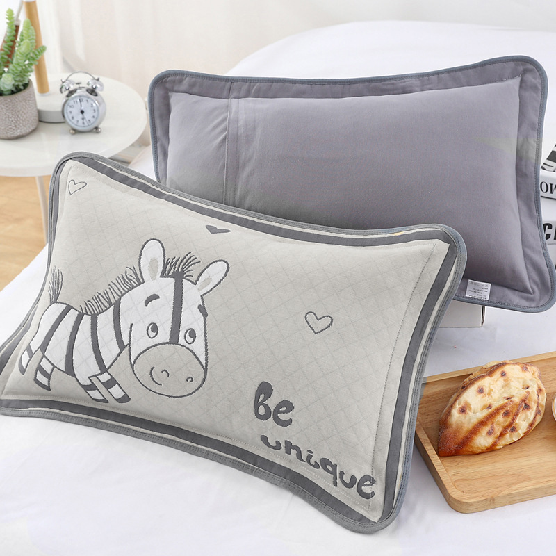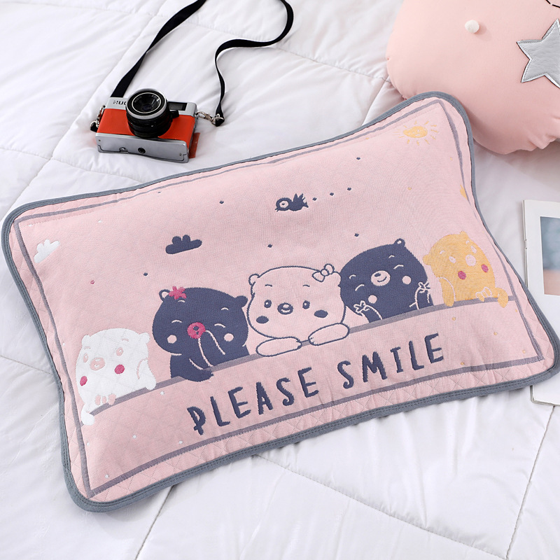 어린이 베갯잇 중형 고급 35*55 면 고급 거즈 6 층 베개 없음 아기 통기성 땀 흘림 가장자리 베갯잇