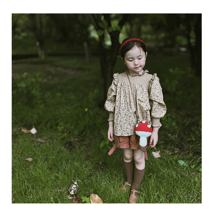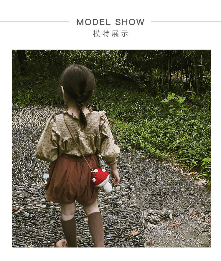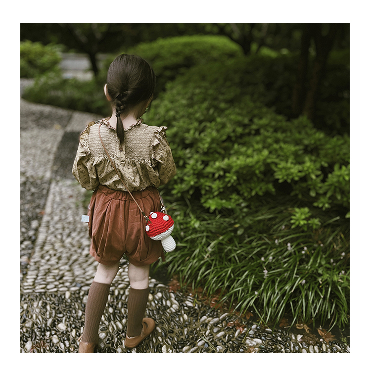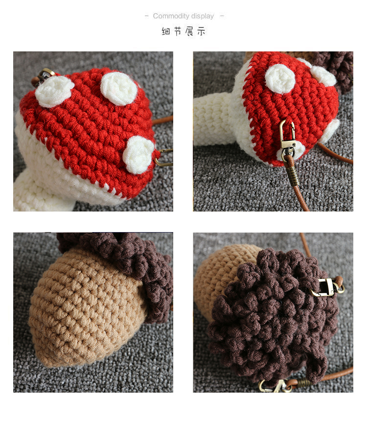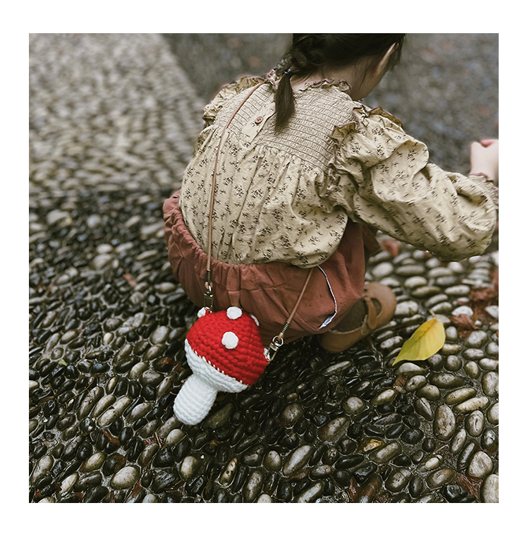 어린이 가방 니트 소녀 수제 모직 가방 아기 만화 귀여운 버섯 소녀 크로스백 수출용스토어 가기