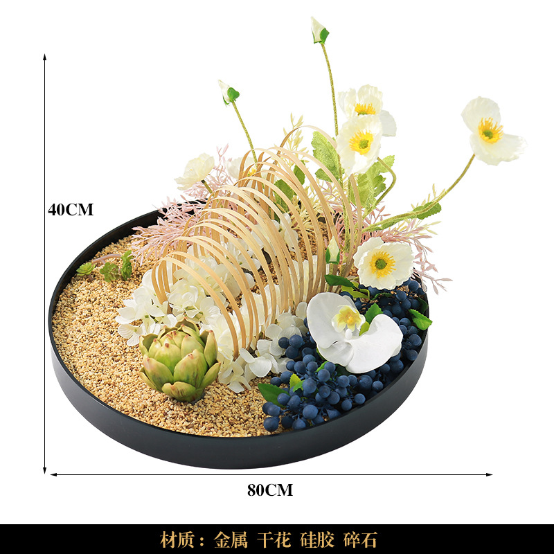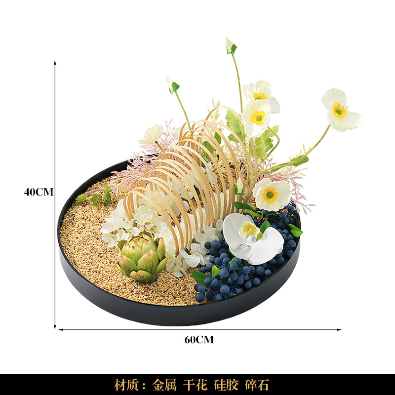 새로운 중국식 대형 원형 테이블 중간 턴테이블 꽃 모델 룸 호텔 식탁 고급 레스토랑 소프트 피팅 시뮬레이션 꽃 장식품스토어 가기