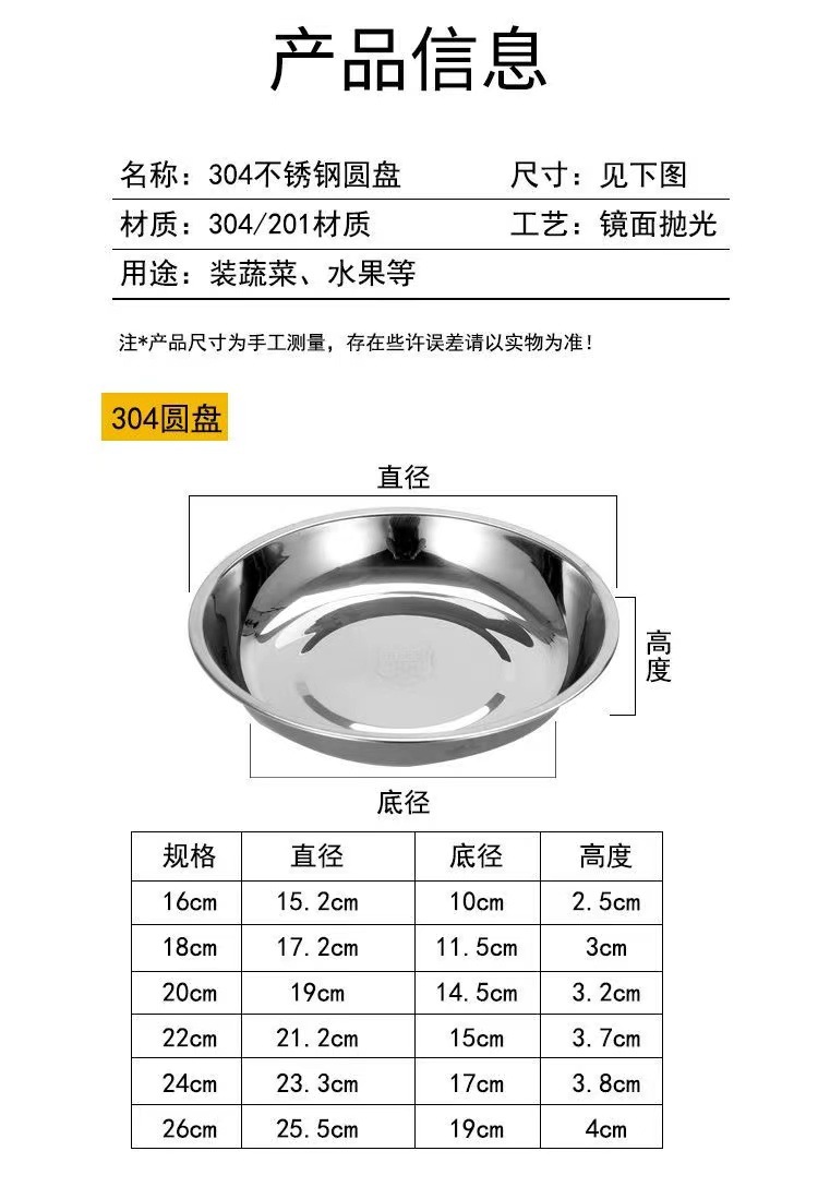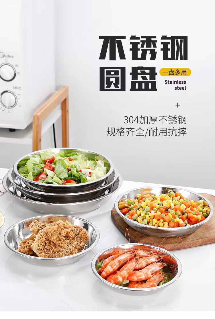 스테인레스 스틸 디스크 비 자성 접시 두꺼운 주방 학교 매점 조미료 접시 라운드 작은 접시 야채 접시스토어 가기