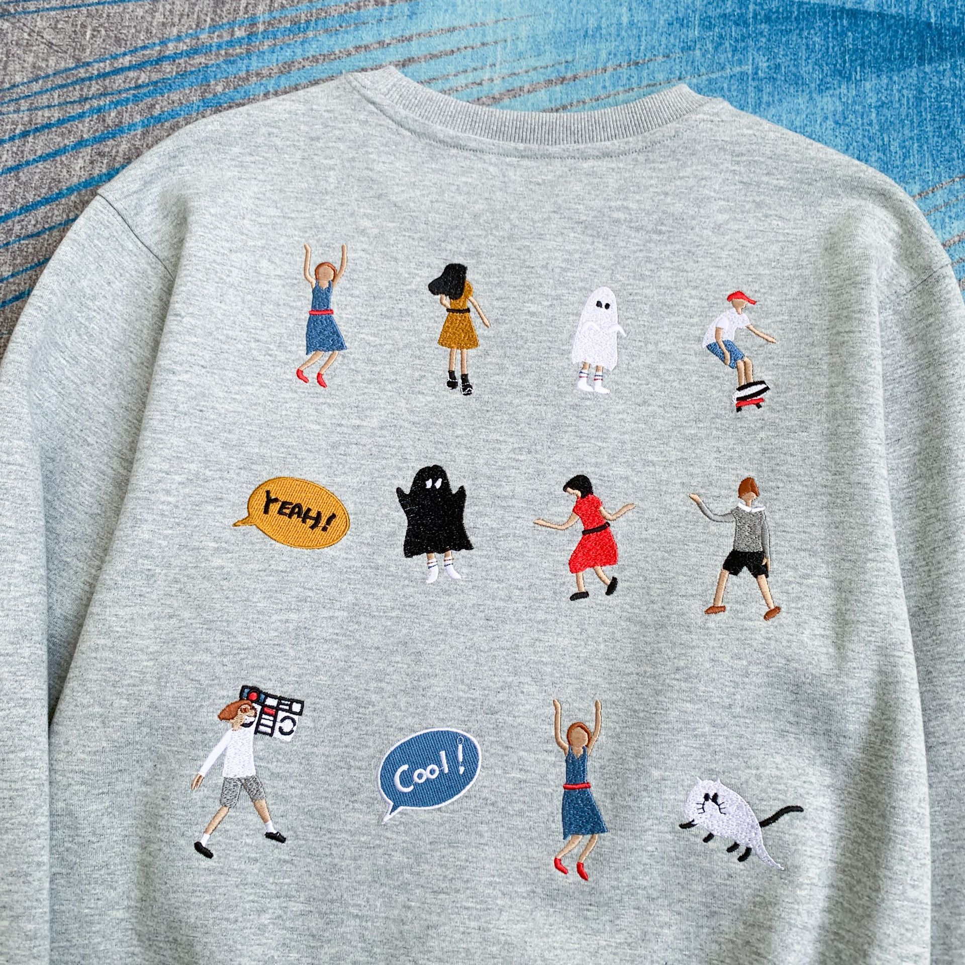ADER 만화풍 중공업 자수 루즈핏 라운드넥 스웨트셔츠 커플 가을 겨울 긴팔 상의 다용도 캐주얼스토어 가기