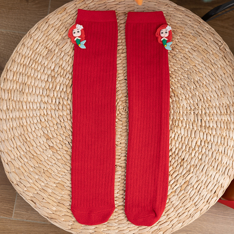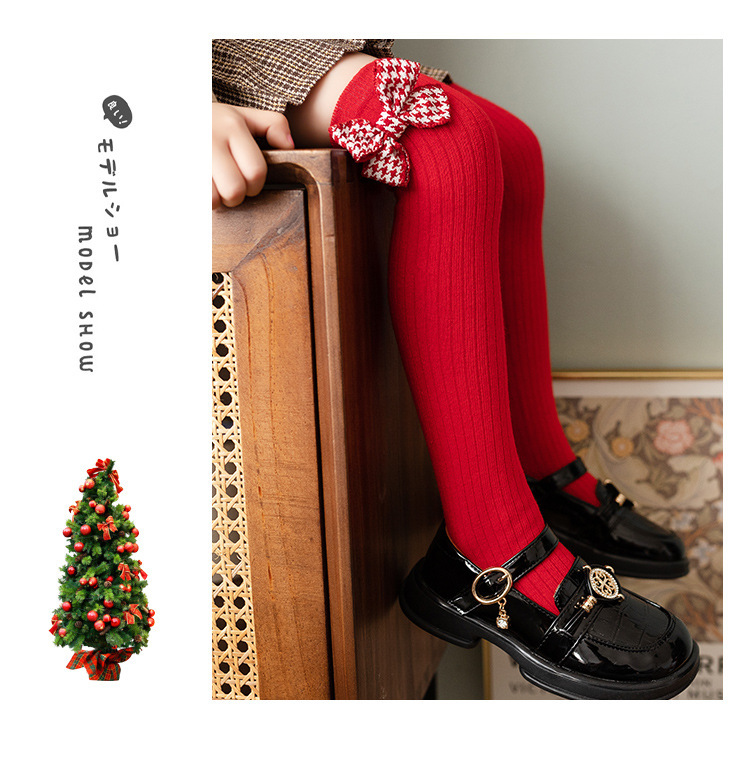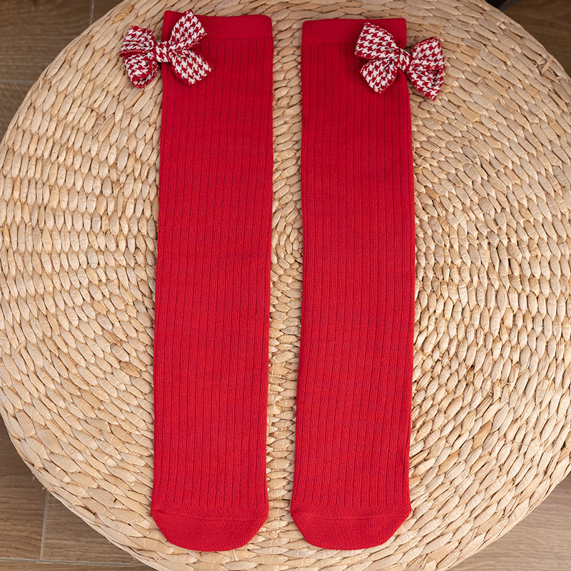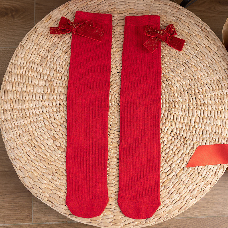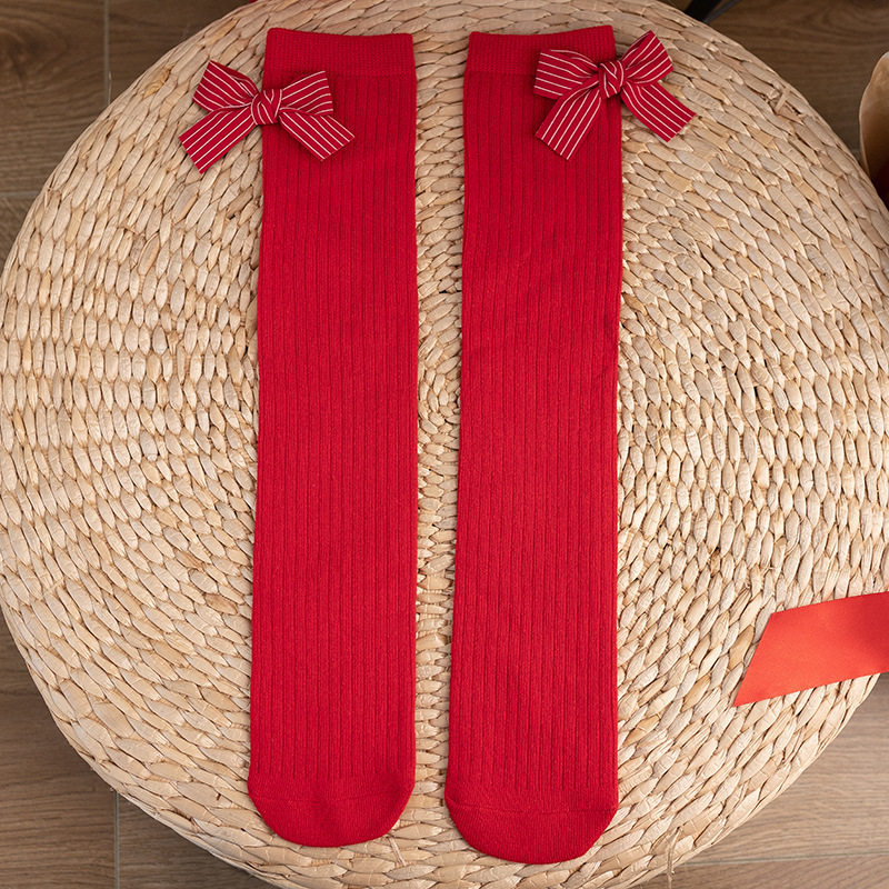 여아 스타킹 봄과 가을 빨간색 얇은 무릎 위 다리 교살 없음 아기 중간 길이 스타킹 어린이 세미 하이 양말