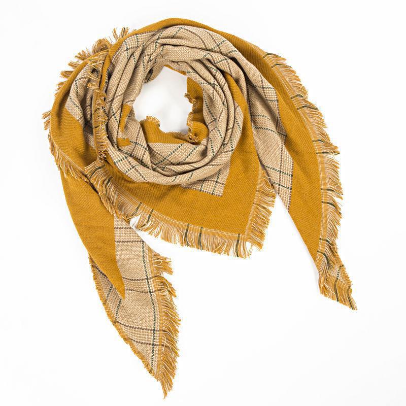 가을과 겨울 2022 골든 체크 무늬 울 패션 캐주얼 스카프 남성과 여성의 모든 매치 숄 두꺼운 삼각형 타월스토어 가기