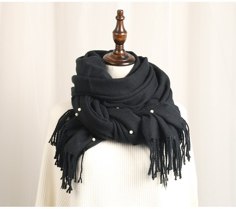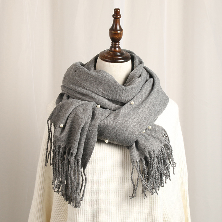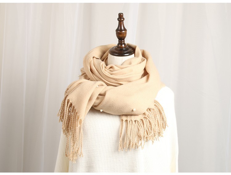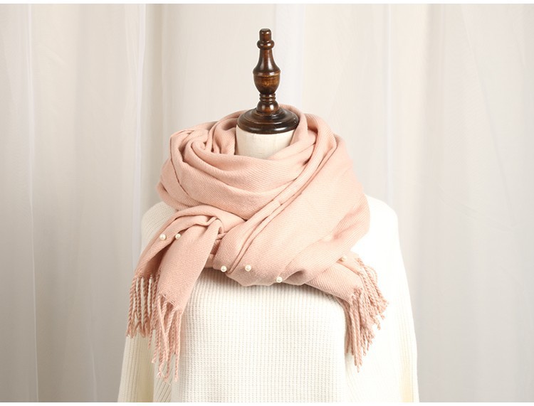 가을 겨울 진주 모조 캐시미어 따뜻한 여성용 스카프 단색 목도리 겸용 숄 원피스 진주 스카프