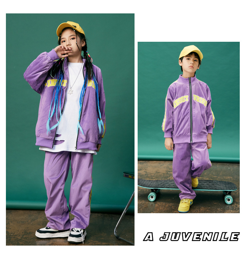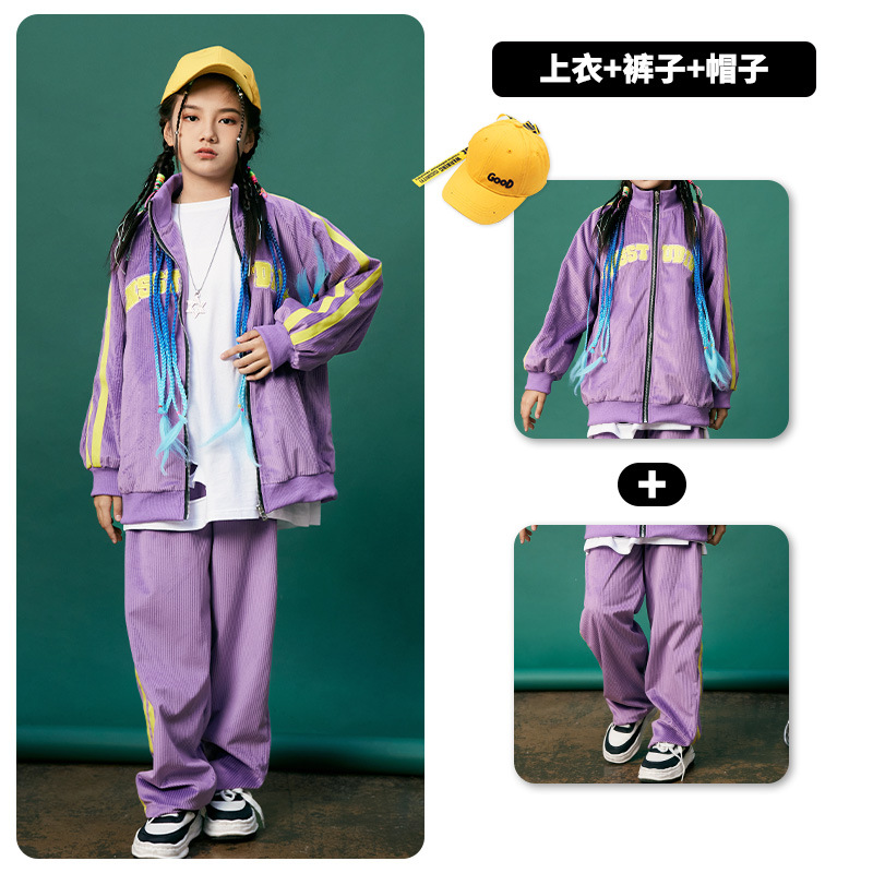 여자 힙합 패션 의류 유행 보라색 공연 옷 힙합 튀김 거리 어린이 의류 남성 패션 의류 어린이 힙합 공연 옷스토어 가기