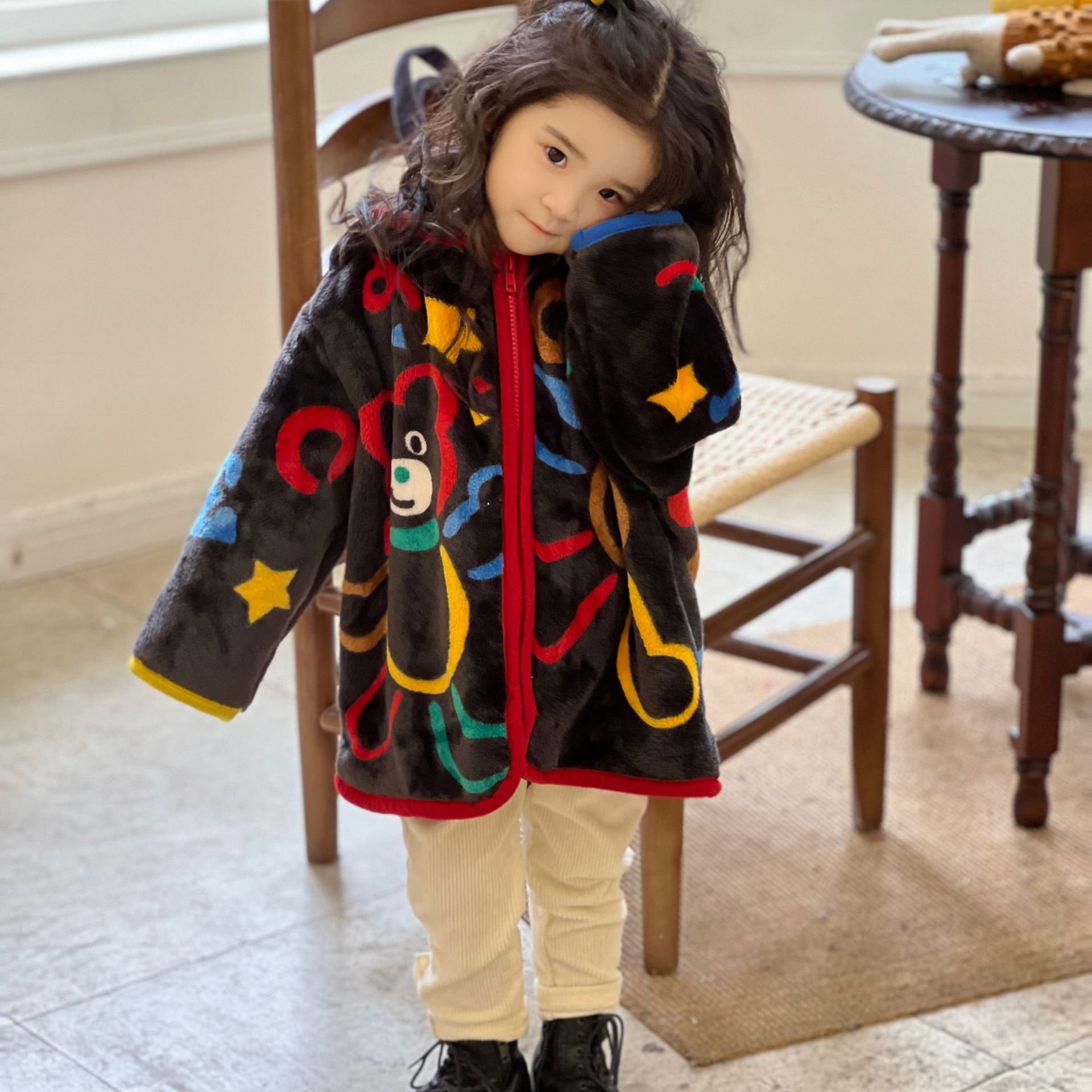 한정 특가 일본 아동복 미키 아동용 퍼 지퍼 재킷 580g 파라벨벳 블랙 베어 재킷