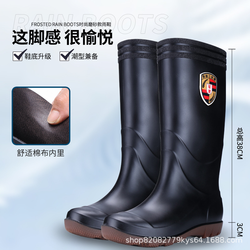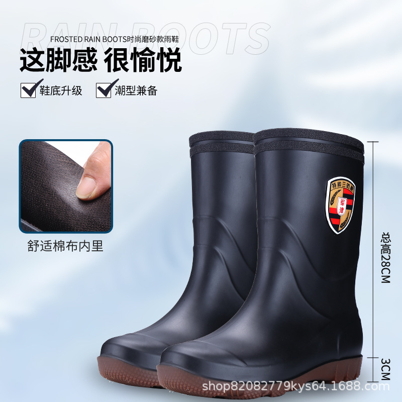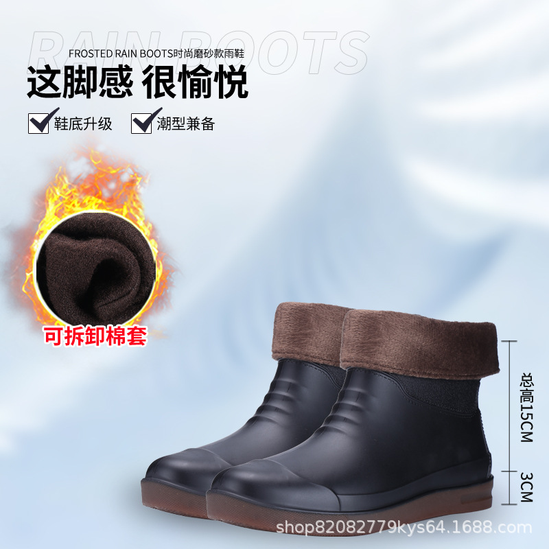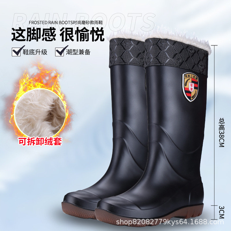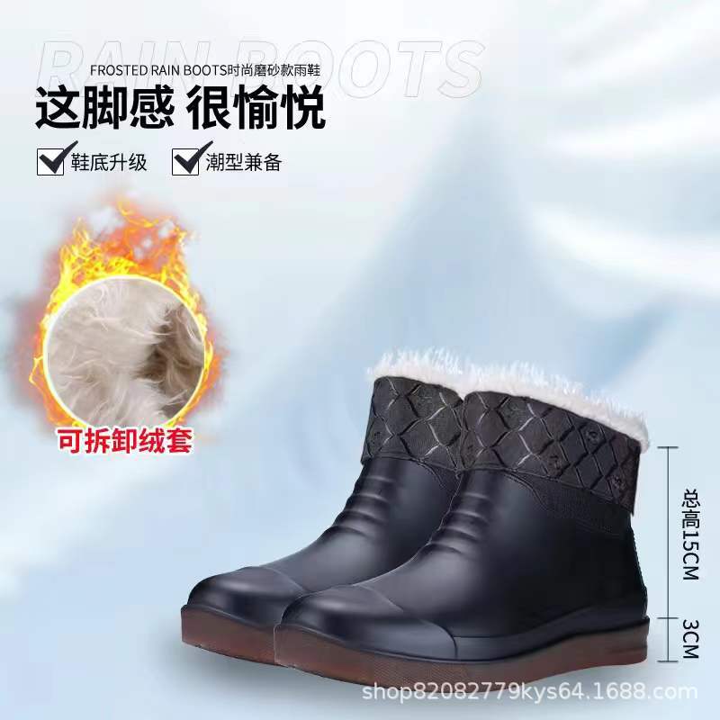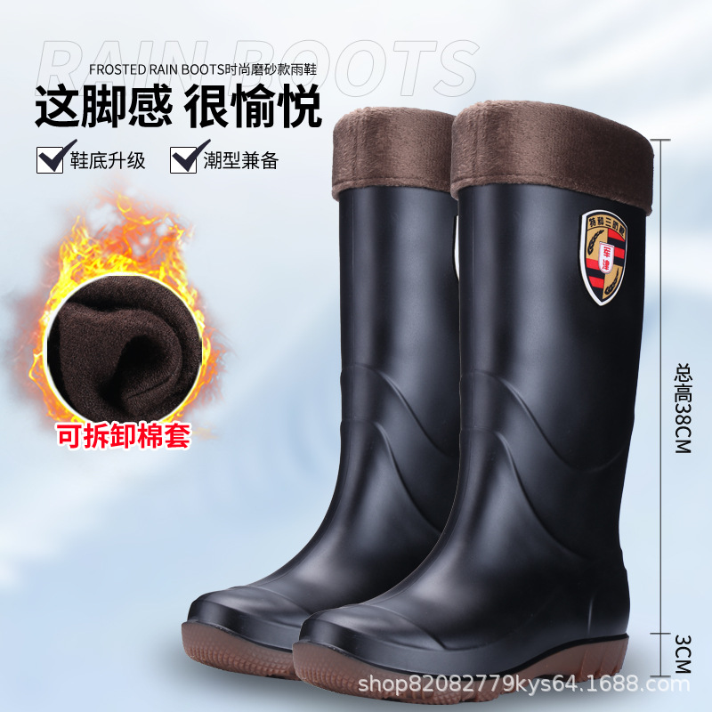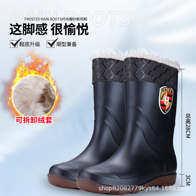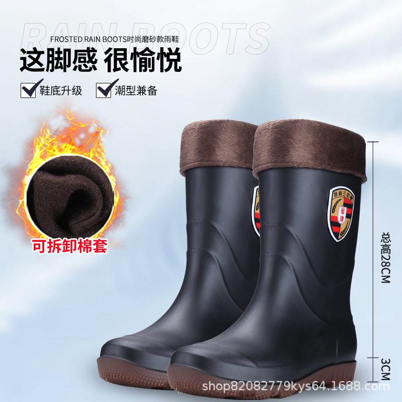 준진 프로스트 패딩 레인 부츠 남성용 미끄럼 방지 내마 모성 면 두꺼운 벨벳 워터 부츠 건설 현장 고등학교 저 방수 신발 고무 장화