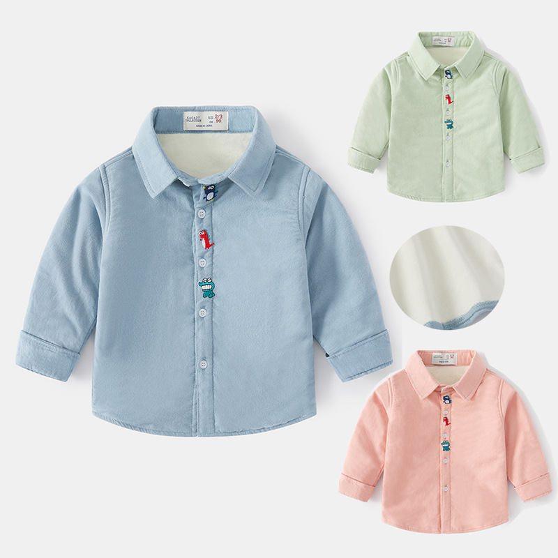 2022 겨울 새로운 아동복 소년의 긴 소매 셔츠 두꺼운 옷깃 기모 어린이 셔츠 아기의 최고 한국 스타일