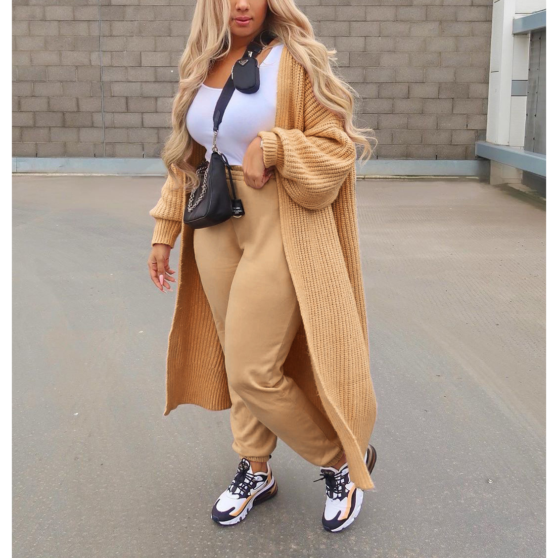 2023 유럽과 미국의 새로운 니트 카디건 스웨터 크로스 보더 코트 따뜻한 긴 느슨한 가정 옷 Tongxiang 스웨터 여성