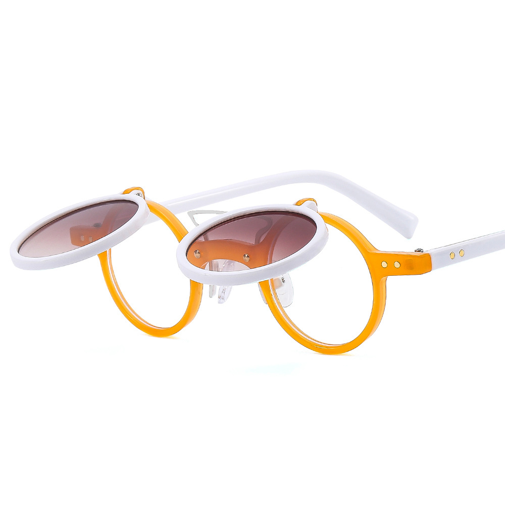 T307 Outu 새로운 라운드 프레임 펑크 더블 레이어 플립 선글라스 남성용 및 여성용 기관차 트렌디 한 개인화 된 대외 무역 선글라스