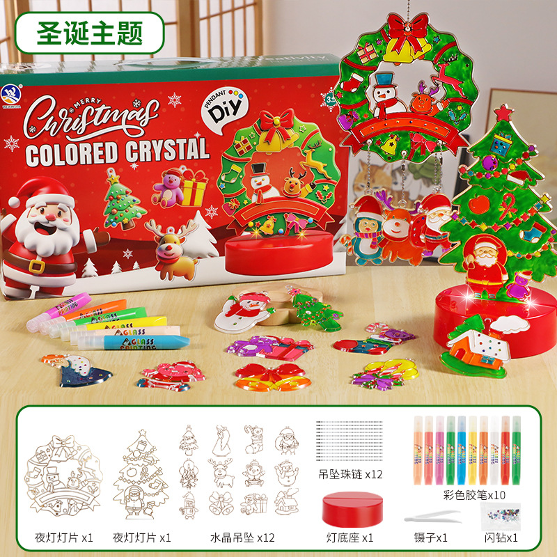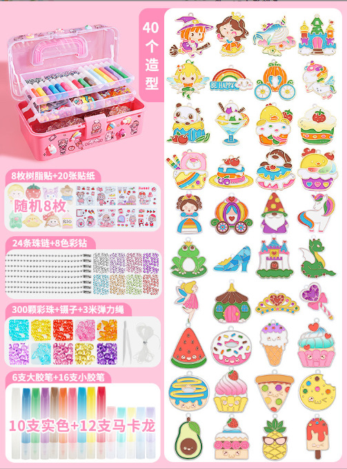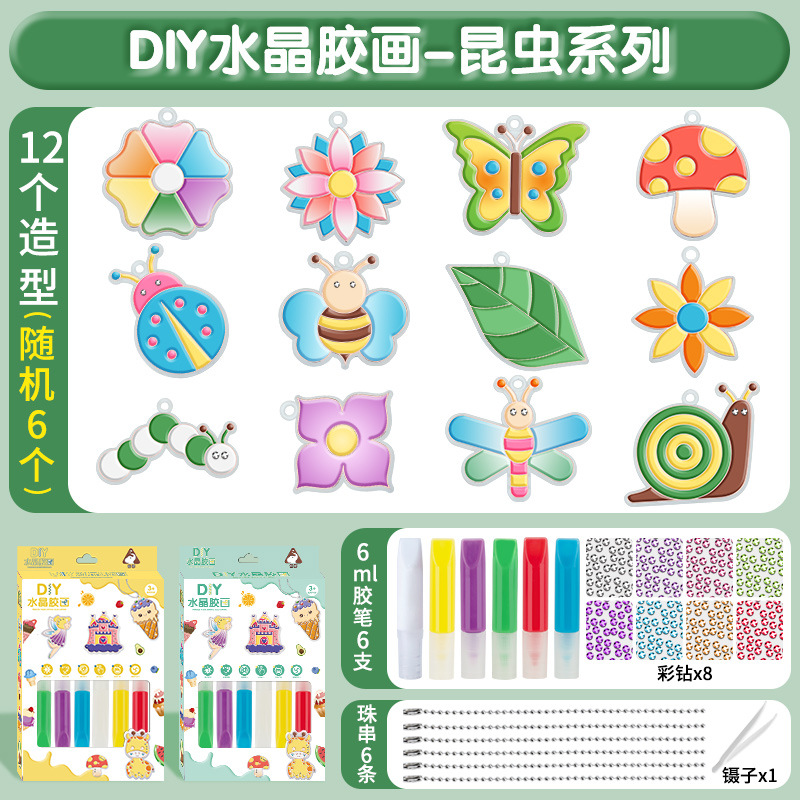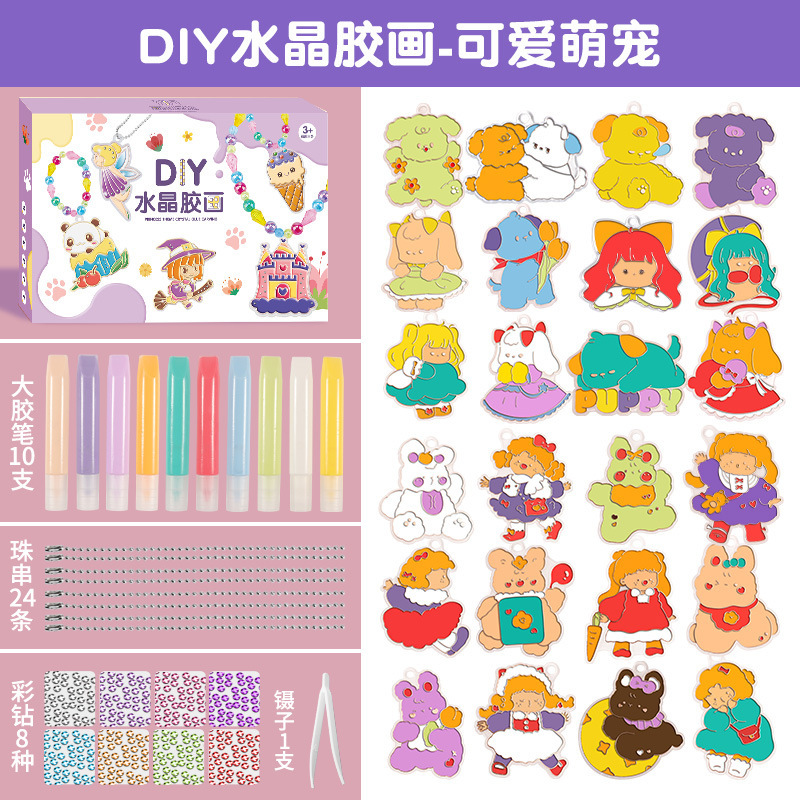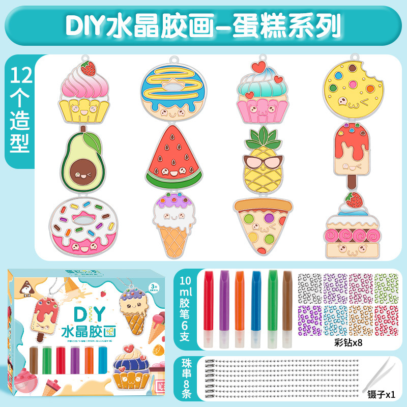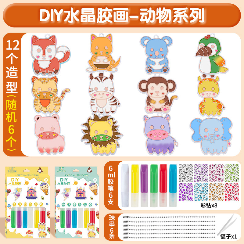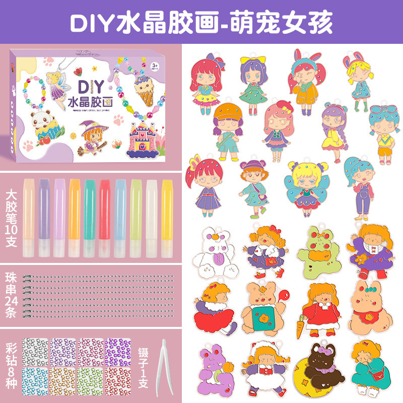 儿童涂鸦过家家水晶胶画 创意DIY手工串珠免烤胶画涂色饰品挂件