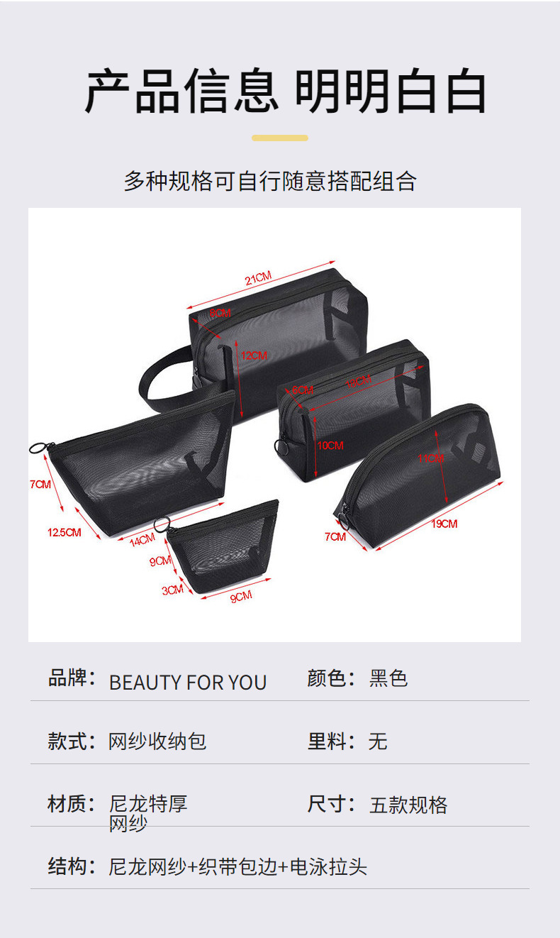 뜨거운 판매 휴대용 나일론 메쉬 화장품 가방 투명 스몰 사이즈 화장품 보관 가방 여행 보관 세척 가방 도매