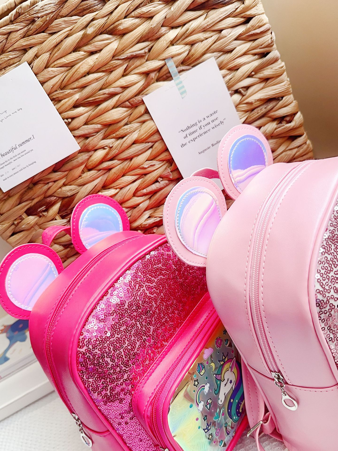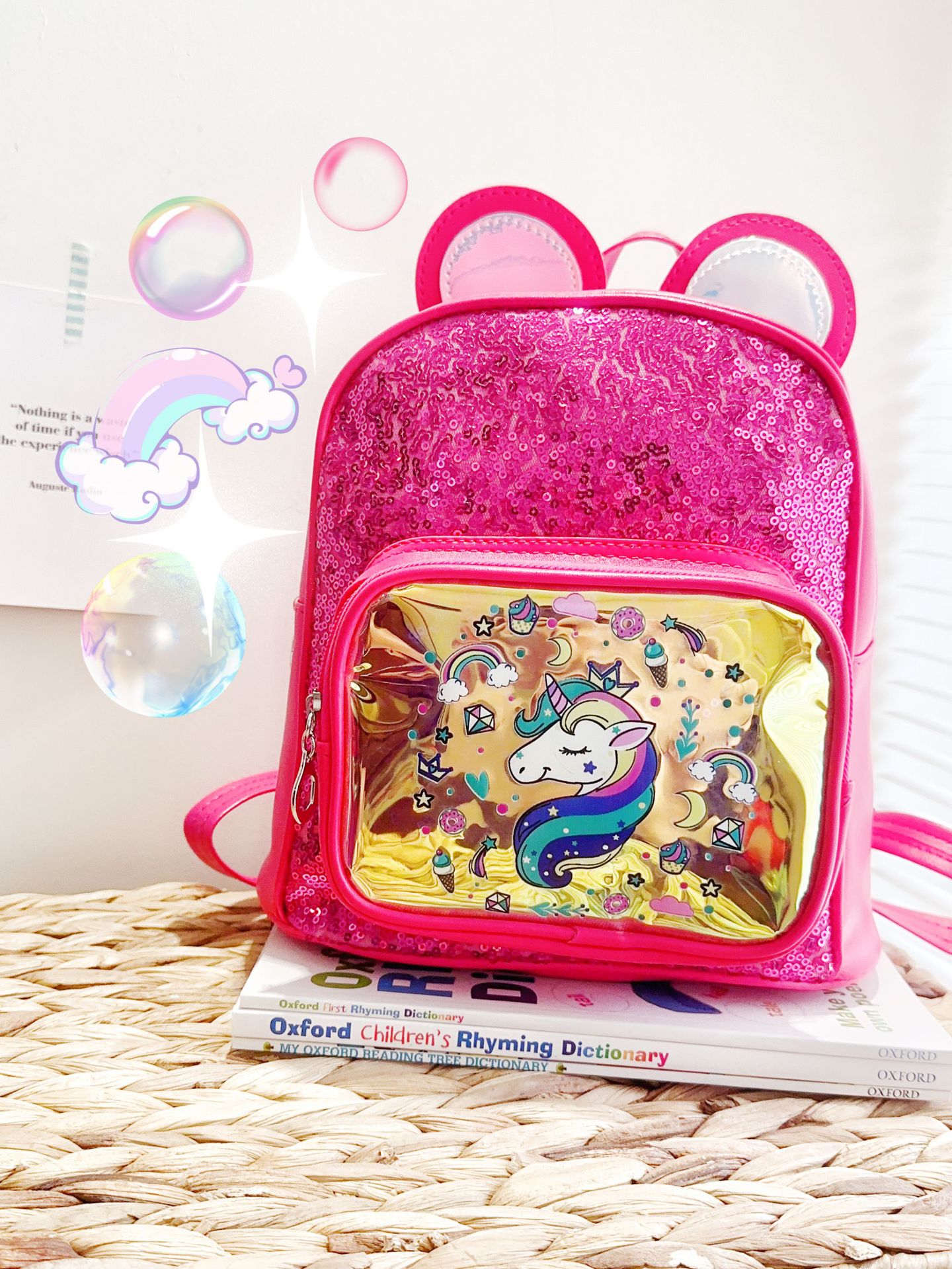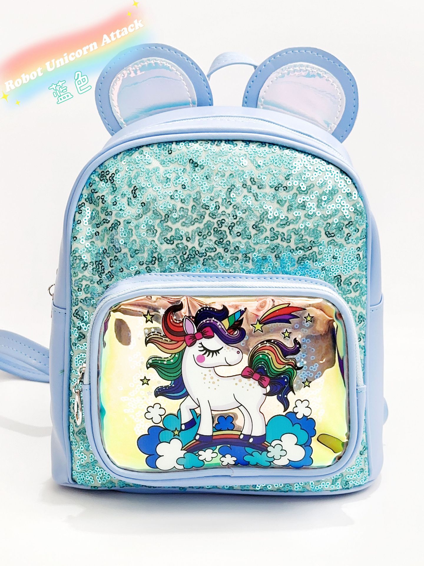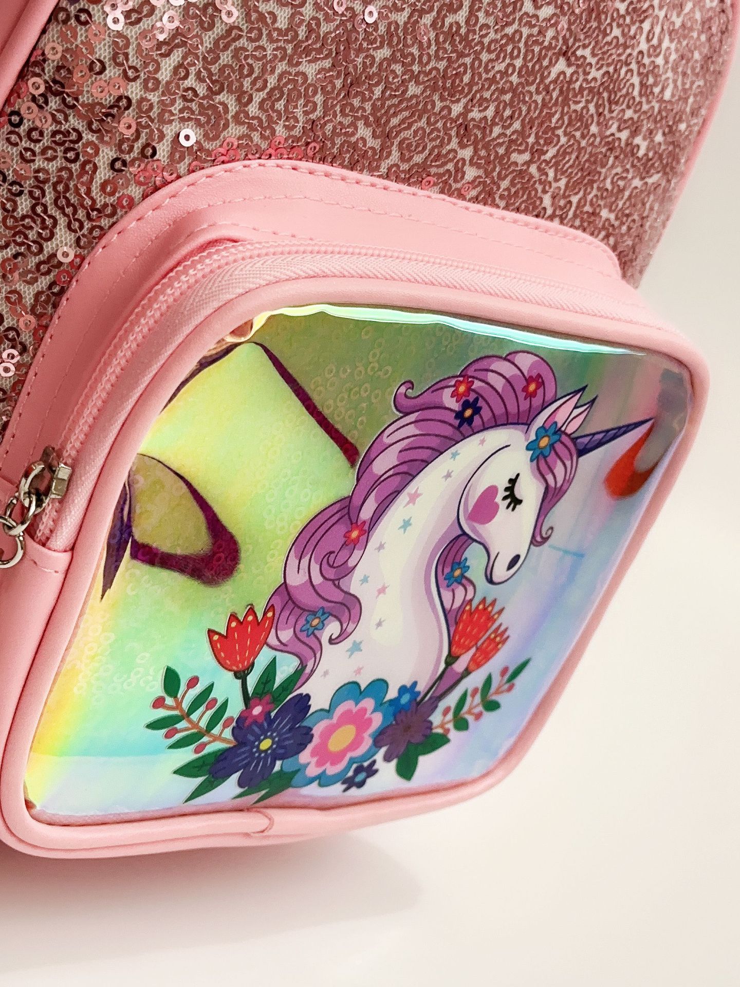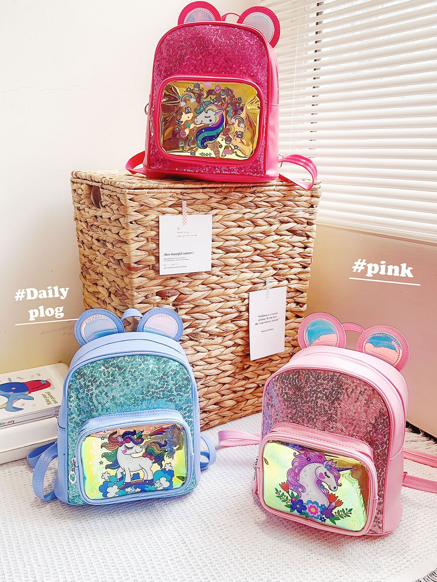 공장 도매 유니콘 백팩 패션 어린이 반짝이 조랑말 만화 여행 가방 여성용스토어 가기