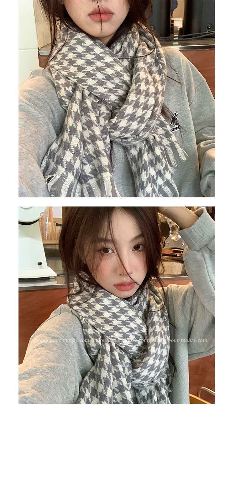 한국식 가을과 겨울 클래식 흑백 하운드투스 스카프 한국식 술 커플의 대형 숄 이중 용도 따뜻한 스카프스토어 가기