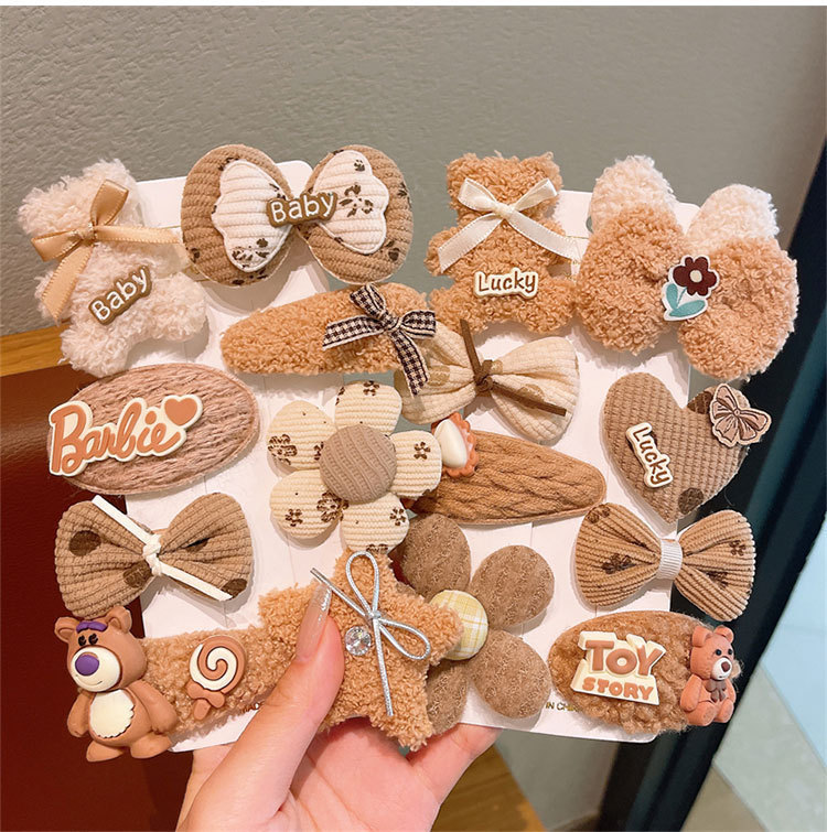 2025 신상 인기 인스타그램 헤어핀 가을 겨울 털 헤어핀 클립 헤어 액세서리 사이드 클립 머리 장식 어린이 여자아이용