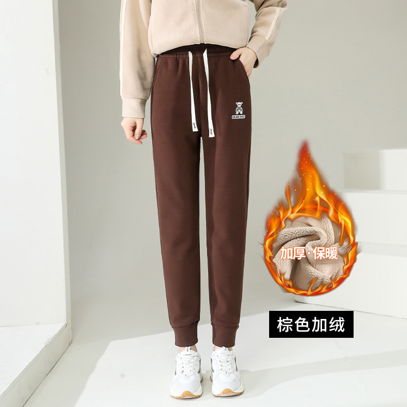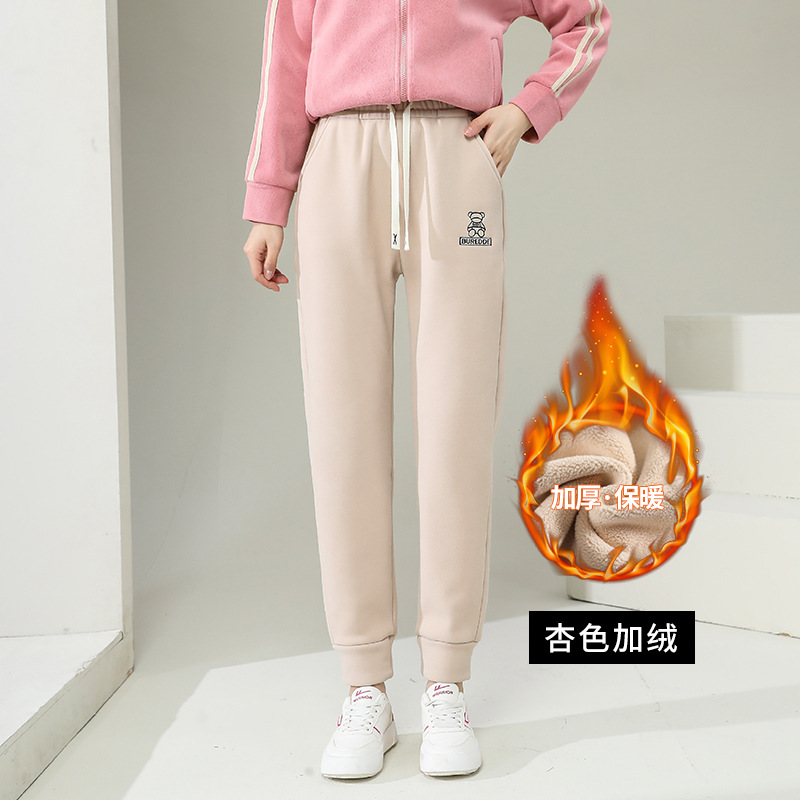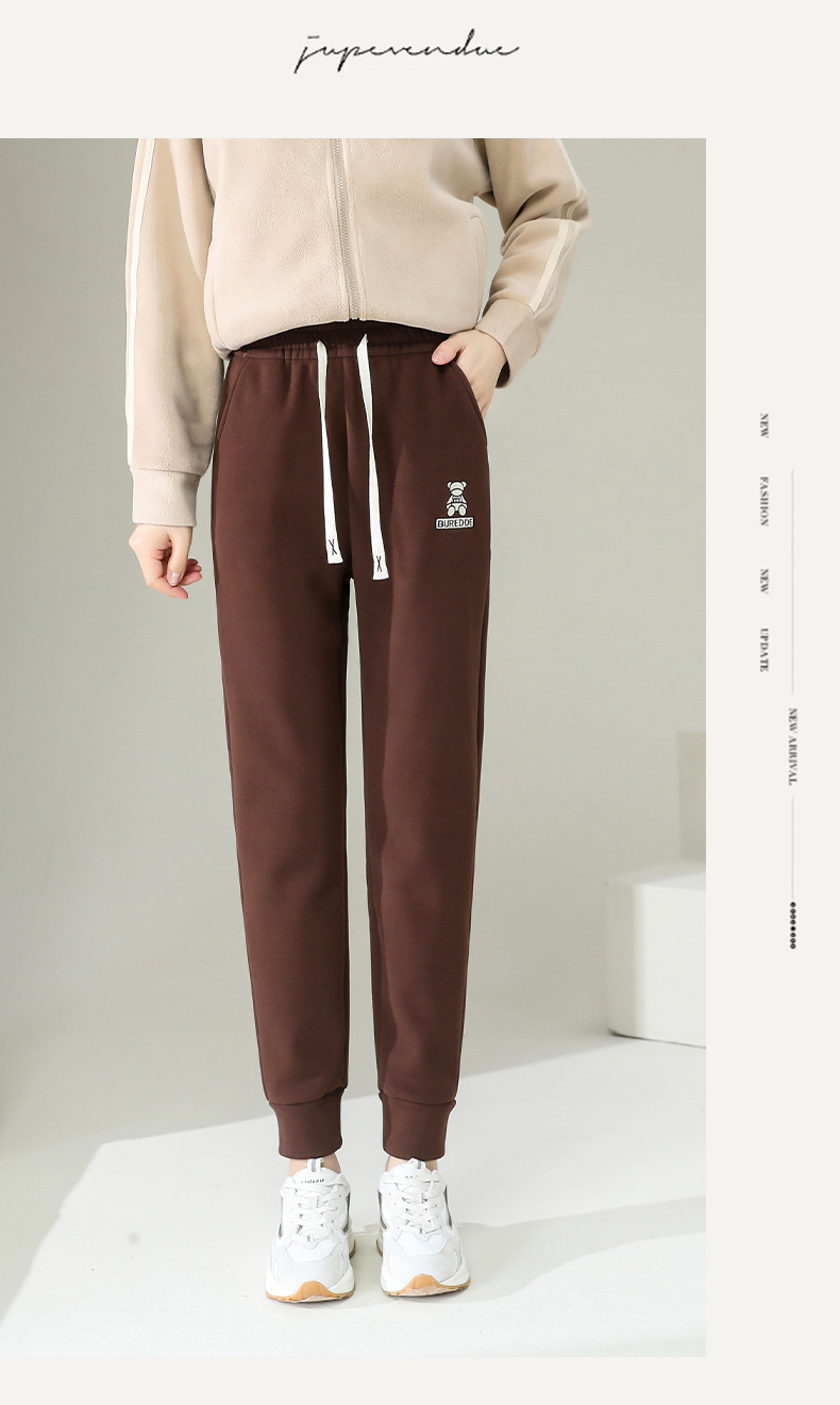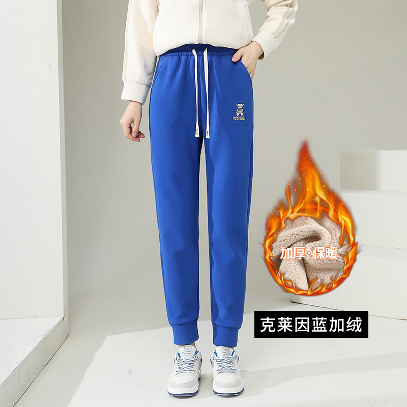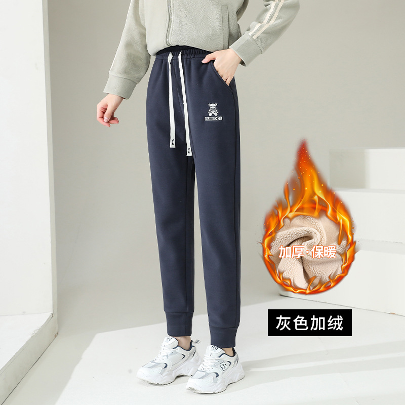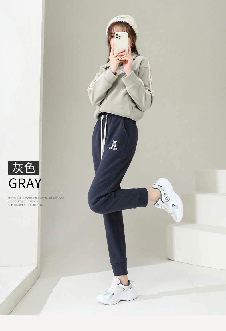 가을과 겨울 2023 새로운 방풍 바지 여성용 두꺼운 따뜻한 방한 캐주얼 모든 매치 다리 졸라매는 끈 스포츠 바지 한국 스타일 여성스토어 가기