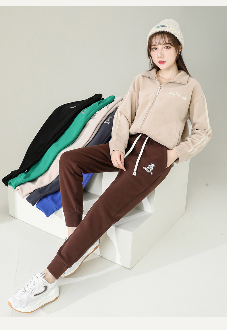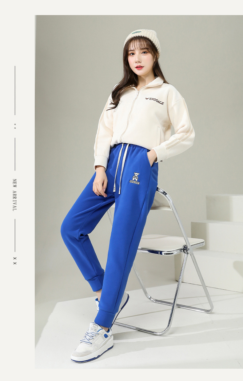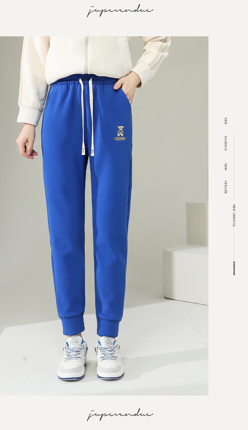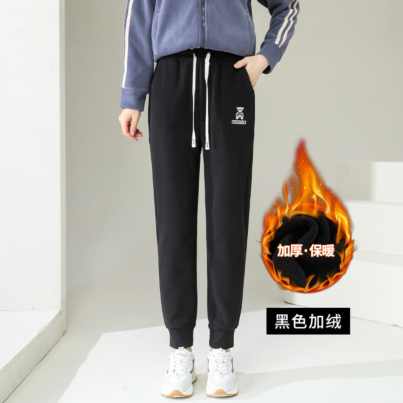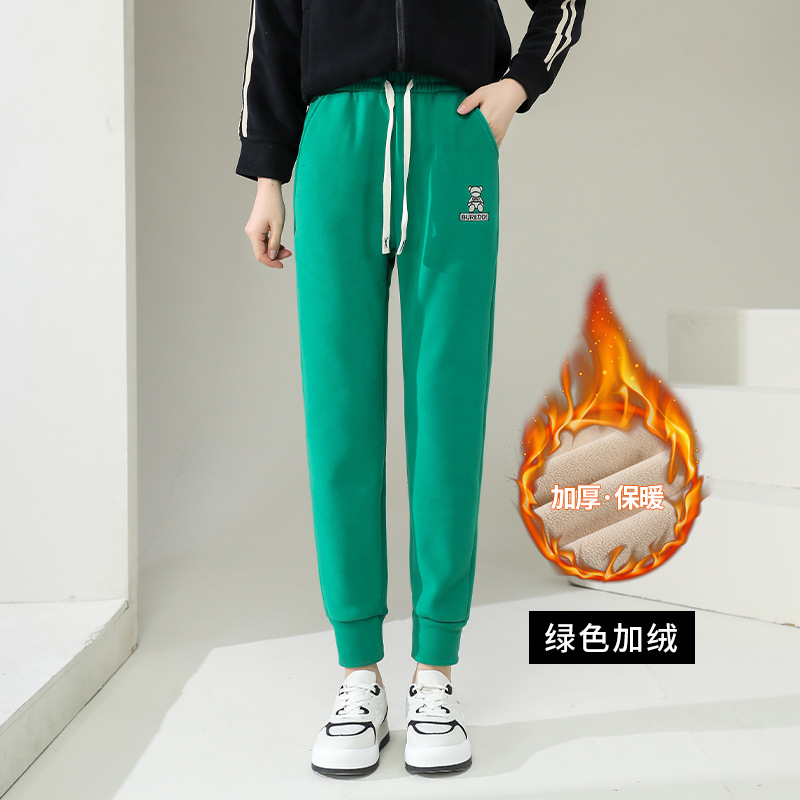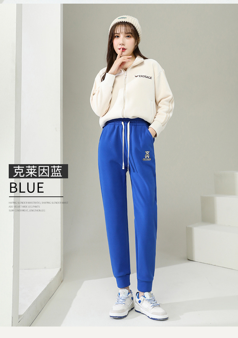 가을과 겨울 2023 새로운 방풍 바지 여성용 두꺼운 따뜻한 방한 캐주얼 모든 매치 다리 졸라매는 끈 스포츠 바지 한국 스타일 여성스토어 가기