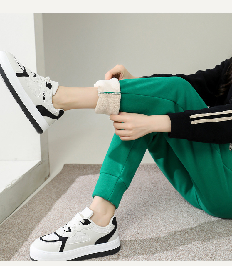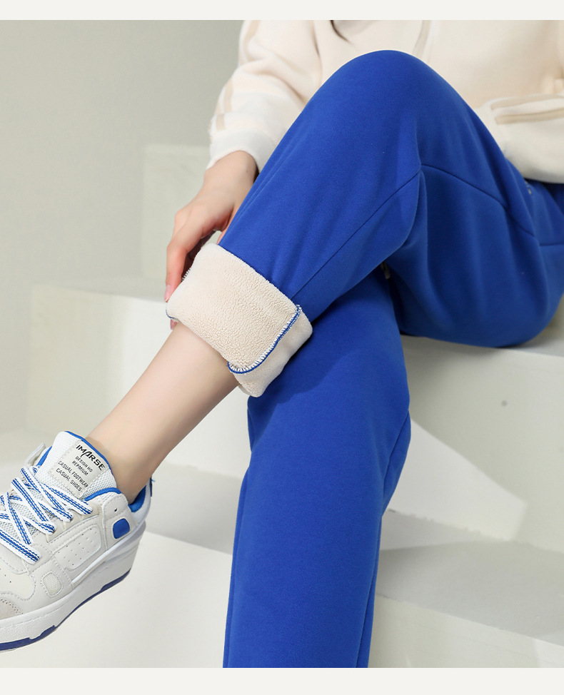 가을과 겨울 2023 새로운 방풍 바지 여성용 두꺼운 따뜻한 방한 캐주얼 모든 매치 다리 졸라매는 끈 스포츠 바지 한국 스타일 여성