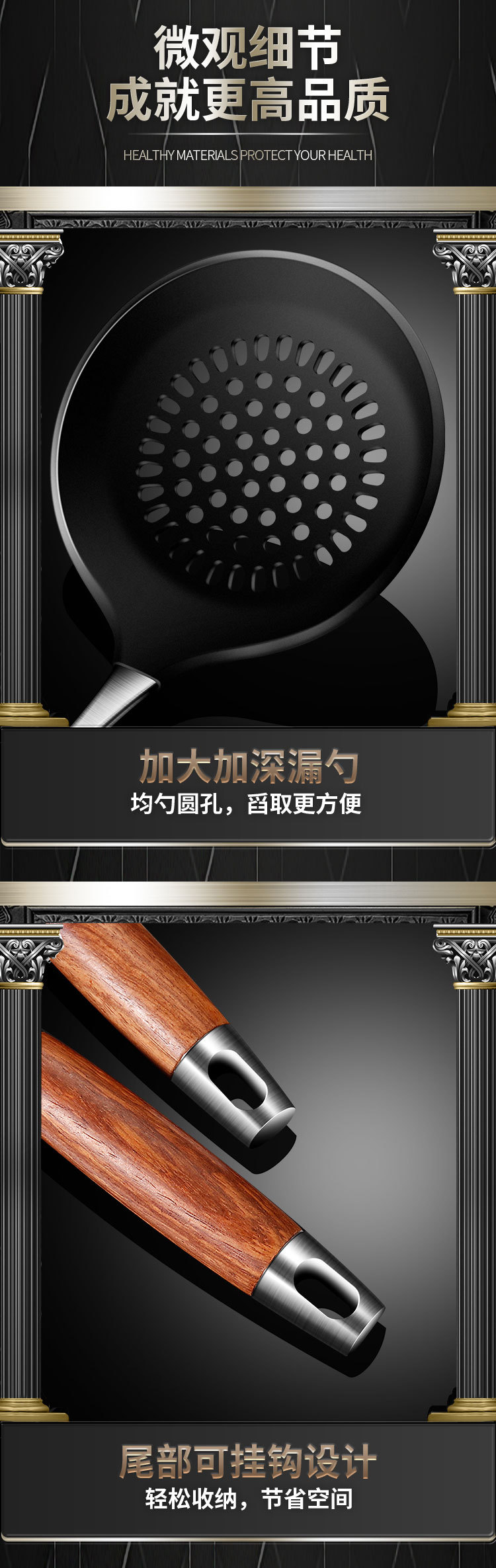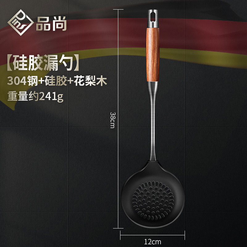 304 스테인레스 스틸 실리콘 주방 용품 세트, 화상 방지 붙지 않는 프라이팬, 주걱, 고급스러운 로즈우드 소쿠리 및 스푼