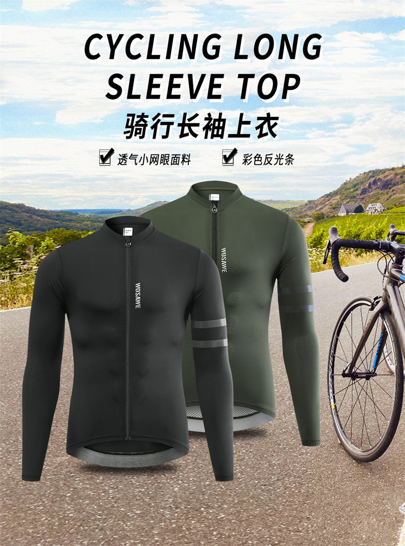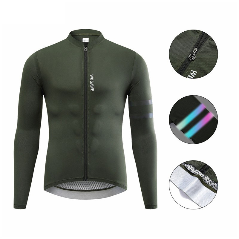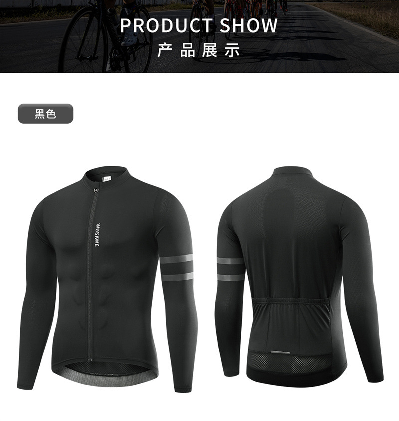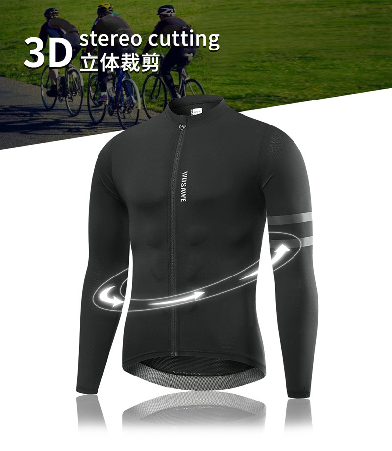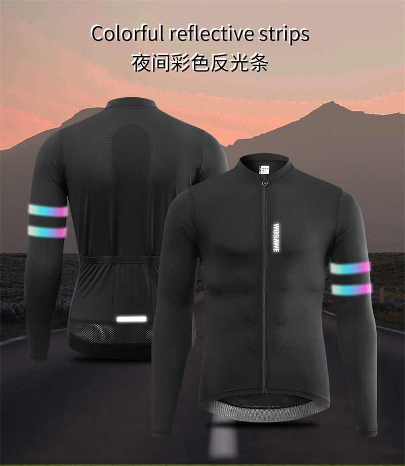WOSAWE男士骑行长袖上衣,袖子上有两条彩色反光条,透气、速干、吸湿排汗