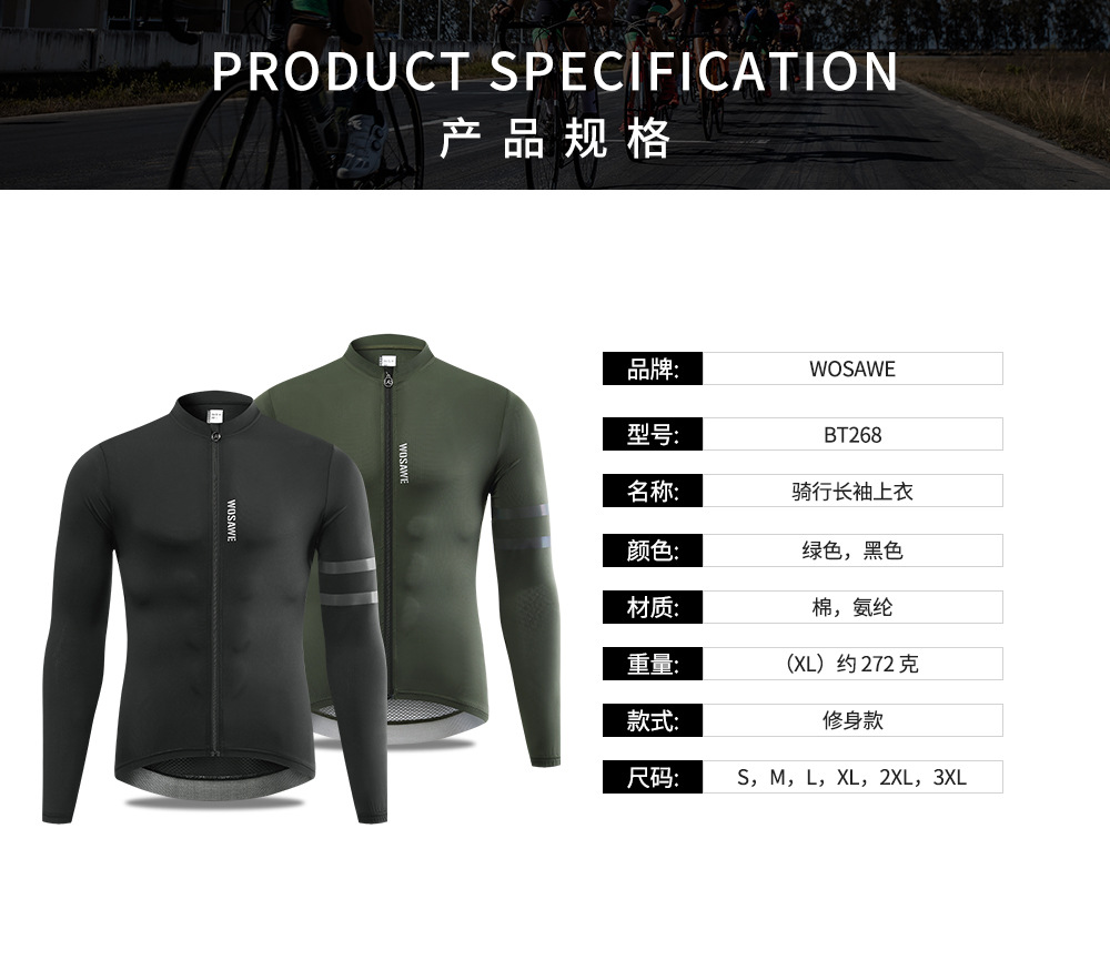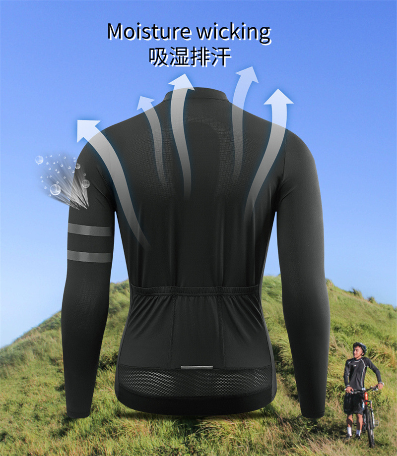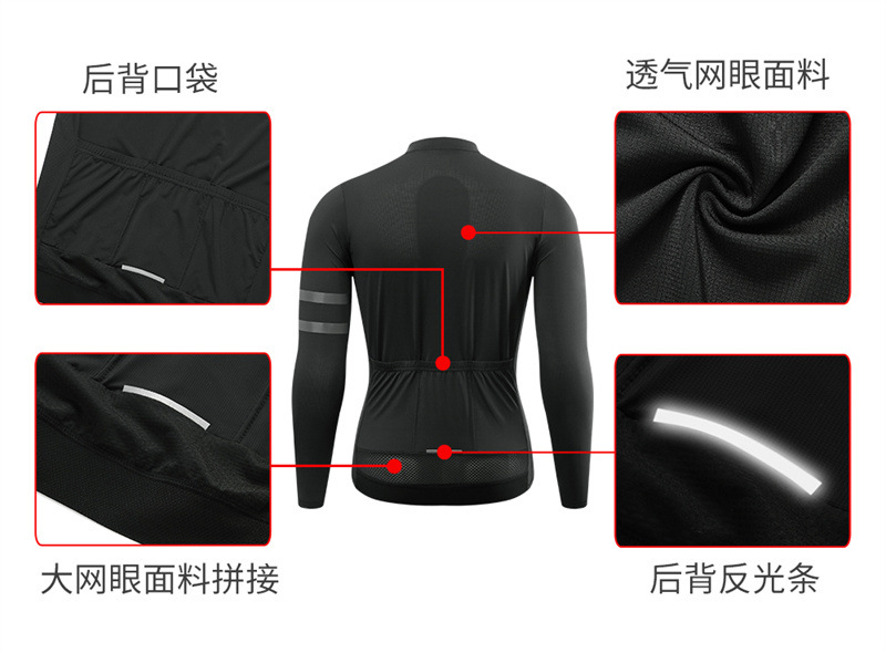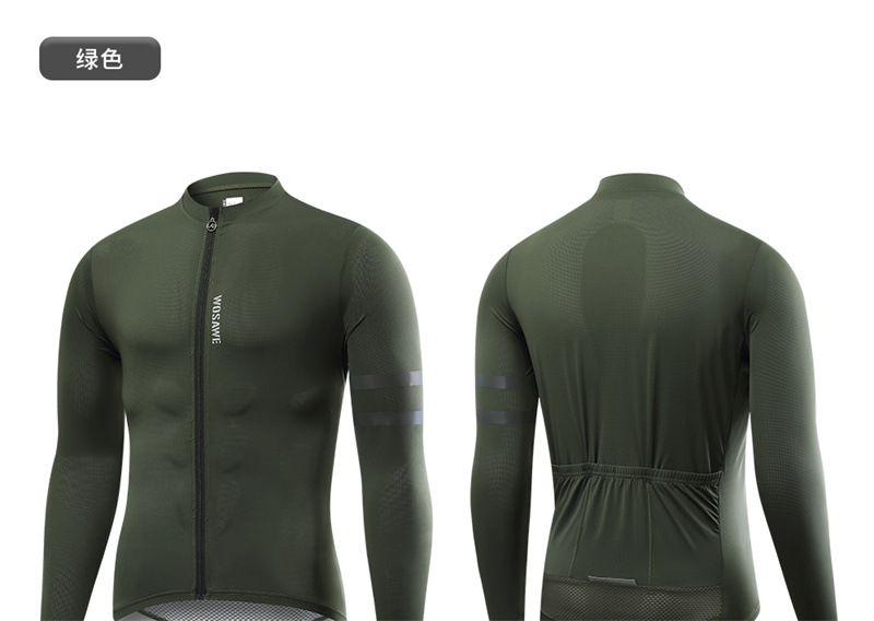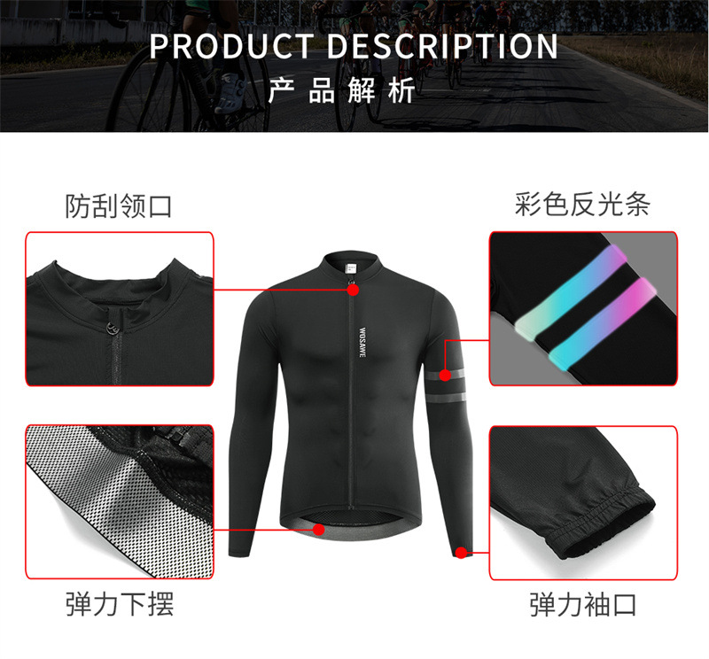 WOSAWE男士骑行长袖上衣,袖子上有两条彩色反光条,透气、速干、吸湿排汗