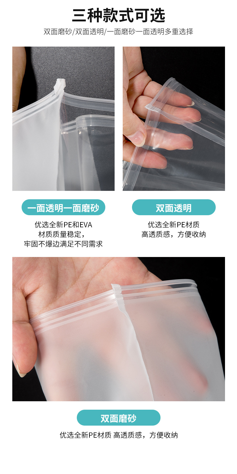 • 지퍼 가방 PE EVA 측면 프로스트 사이드 투명 더블 레이어 14 실크; 40*50;PE EVA