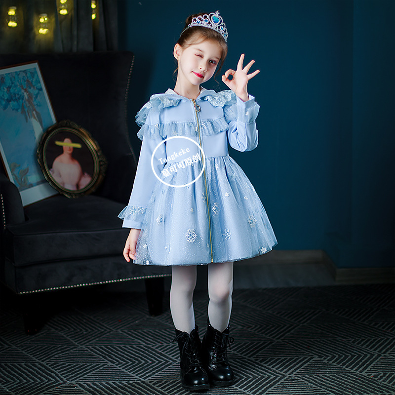 여자 2022 가을 긴 소매 새로운 세련된 후드 재킷 공주 엘사 윈드 브레이커 재킷 가을과 겨울 기모 아동 의류스토어 가기