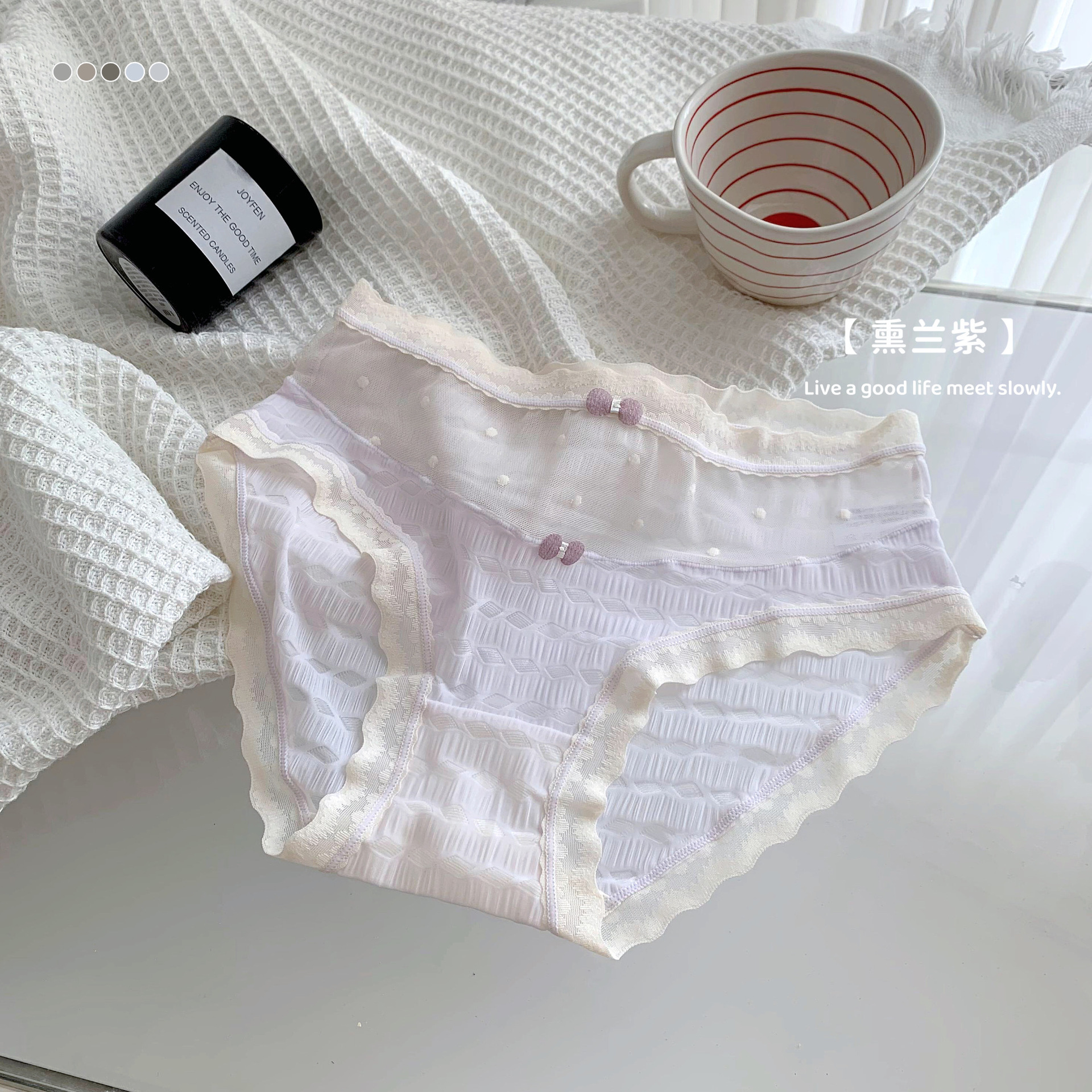 달콤하고 귀여운 레이스 속옷 여성용 웨이브 도트 메쉬 프랑스 스타일 브리프 파클리탁셀 정화 가랑이 진드기 방지 세균스토어 가기