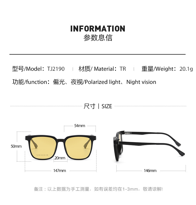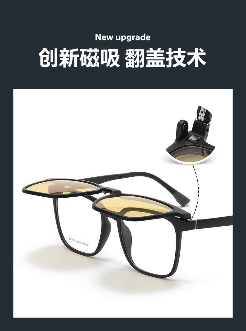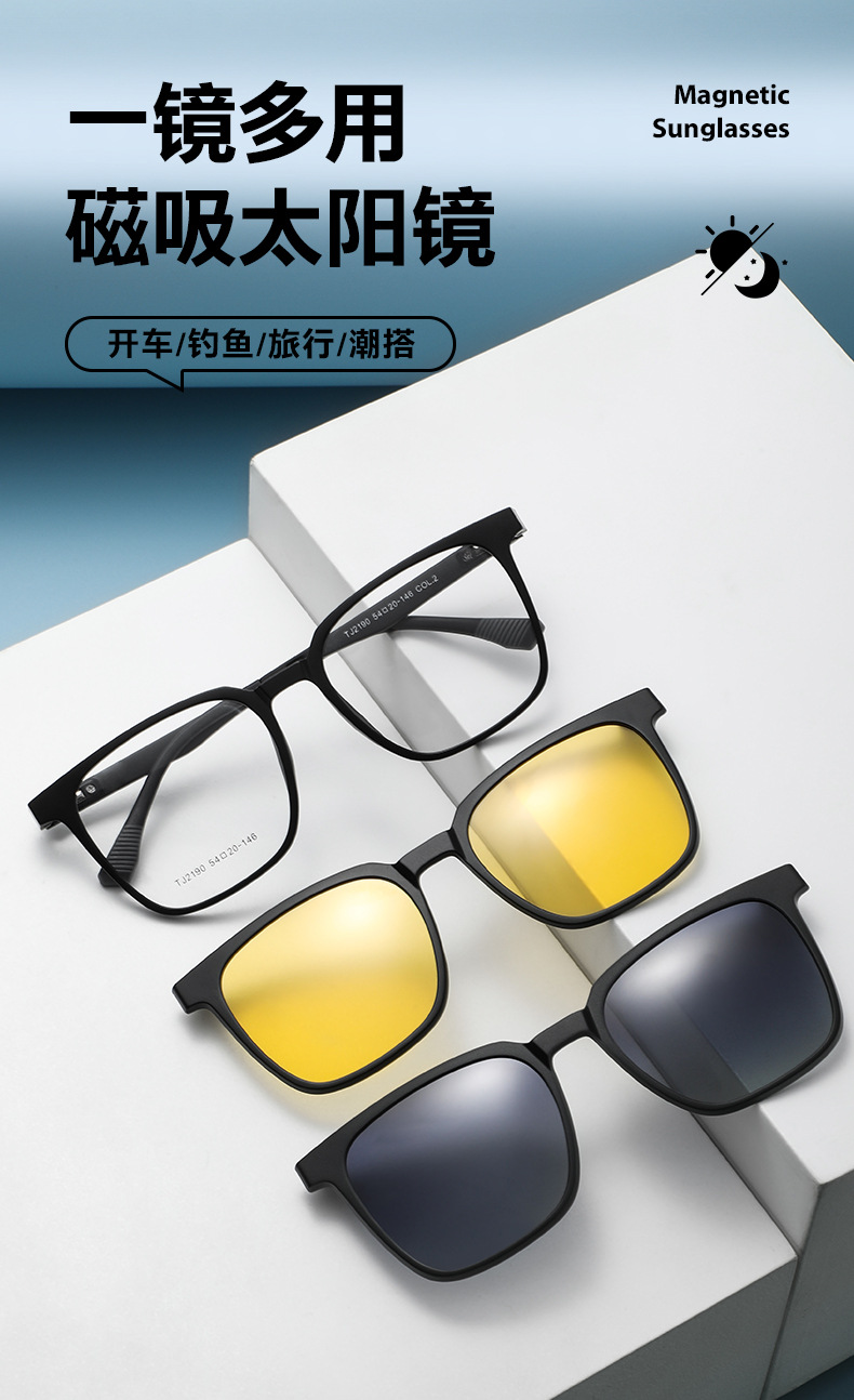 2190 자석식 안경테 사이클링 스포츠 운전 사각 프레임 야간 시력 근시 남녀 고급 편광 선글라스