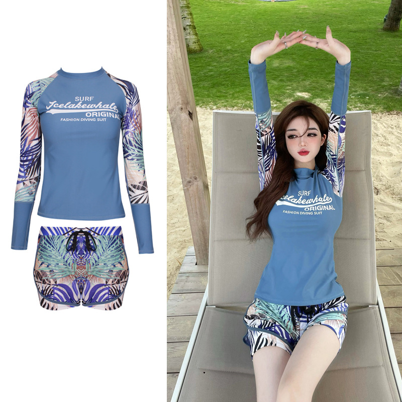분할 수영복 여자의 온천 2022 새로운 폭발 슬리밍 배꼽 커버 보수 수영장 특수 긴 소매 수영 세트