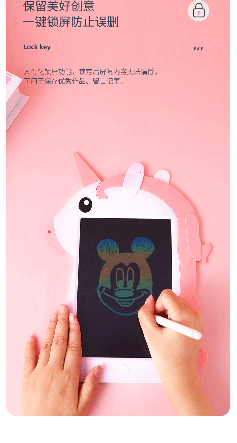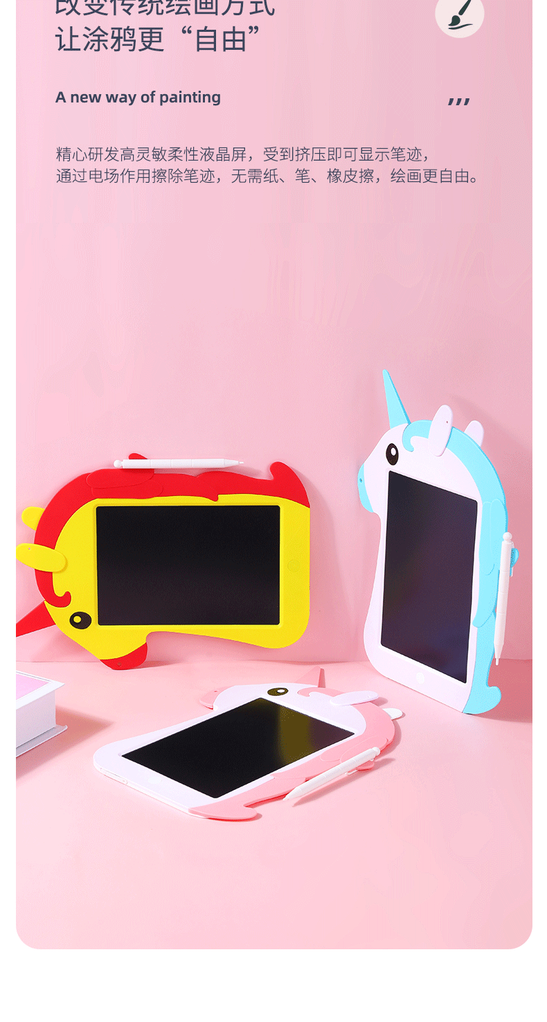 새로운 유니콘 LCD 필기 보드 도매 어린이 8.5 인치 전자 컬러 스크린 낙서 드로잉 보드 만화 손 드로잉 보드