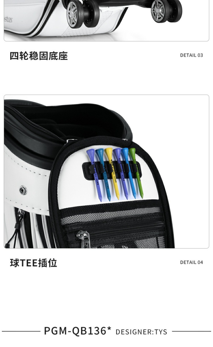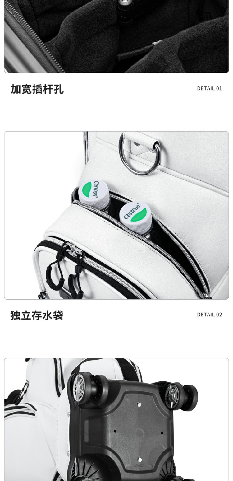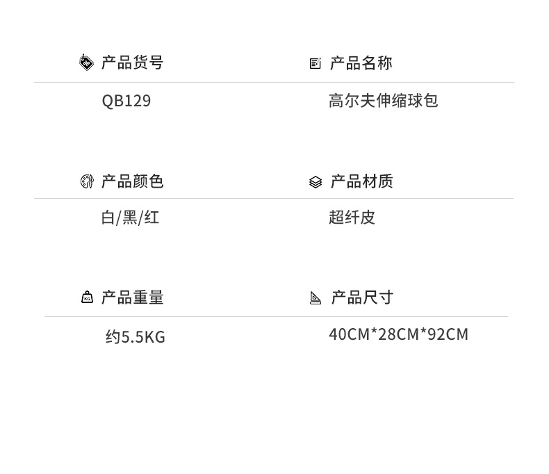 名 称 | 超纤皮革四轮伸缩包 | 容 量 | 可装13支球杆 | |