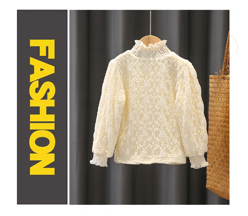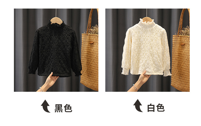 소녀의 새로운 한국식 겨울 어린이 티셔츠 미디어와 큰 아이들이 두껍게 반 터틀넥 레이스 매직 기모 셔츠