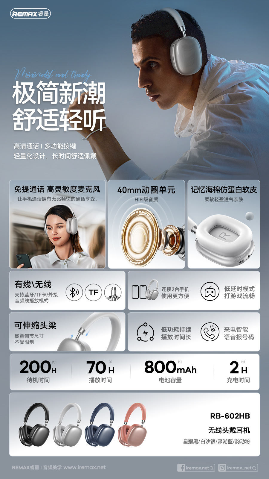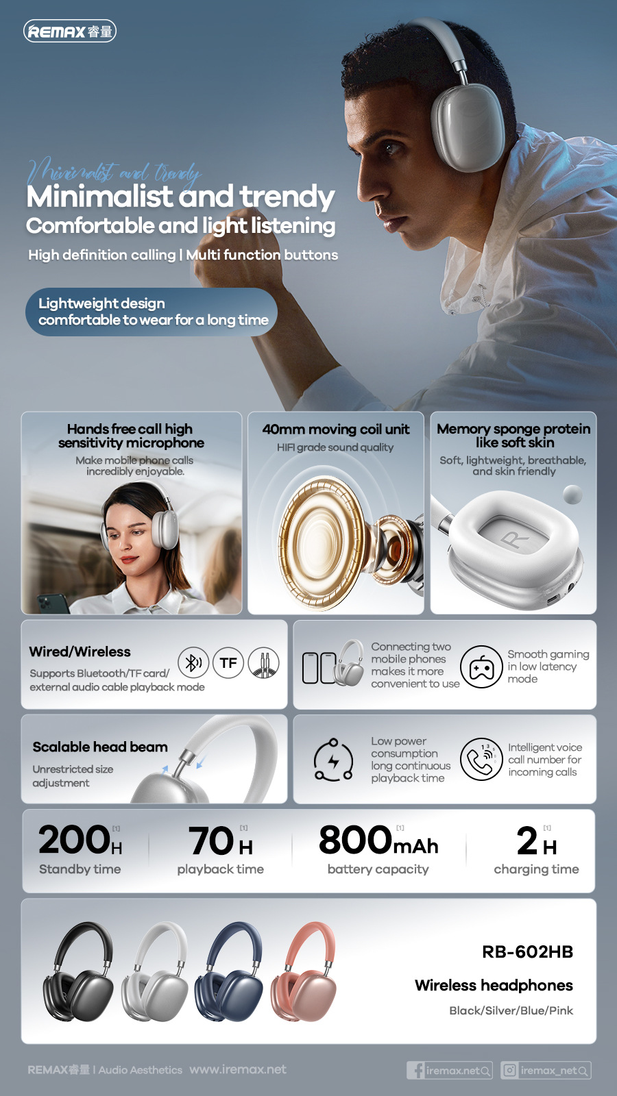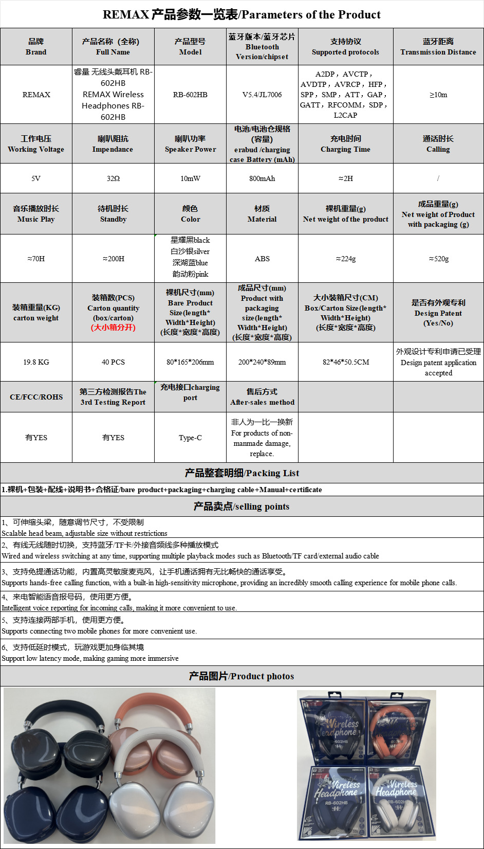 REMAX 무선 헤드셋 블루투스 헤드셋 애플 고화질 스테레오 라이트 헤드셋 602HB