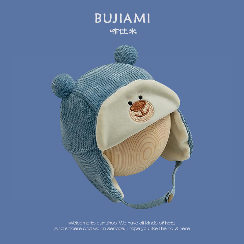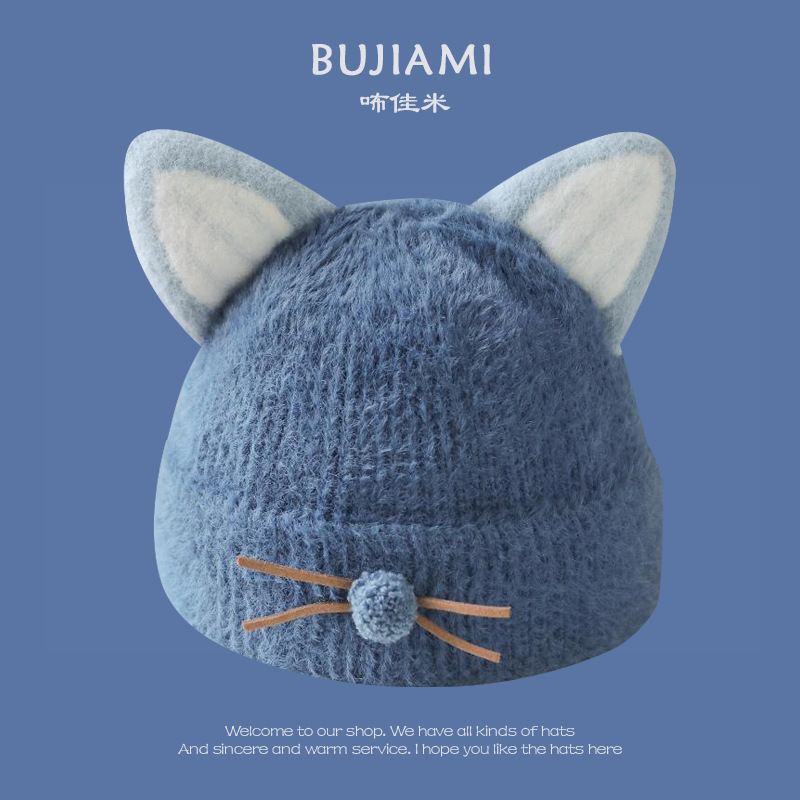클라인 블루 어린이 모자 가을과 겨울 풀오버 모자 소년과 소녀 따뜻한 양모 모자 아기 귀 보호 니트 모자 조수스토어 가기
