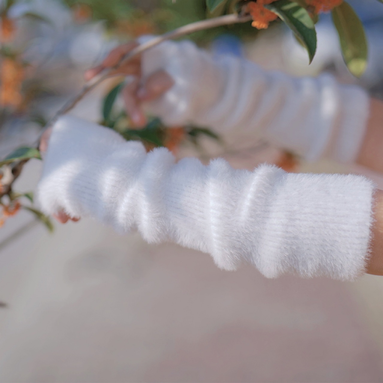 가을과 겨울 봉제 팔 커버 따뜻한 니트 슬리브 손가락 구멍 모조 세이블 두꺼운 팔 보호 장갑 여성용 반 손가락스토어 가기