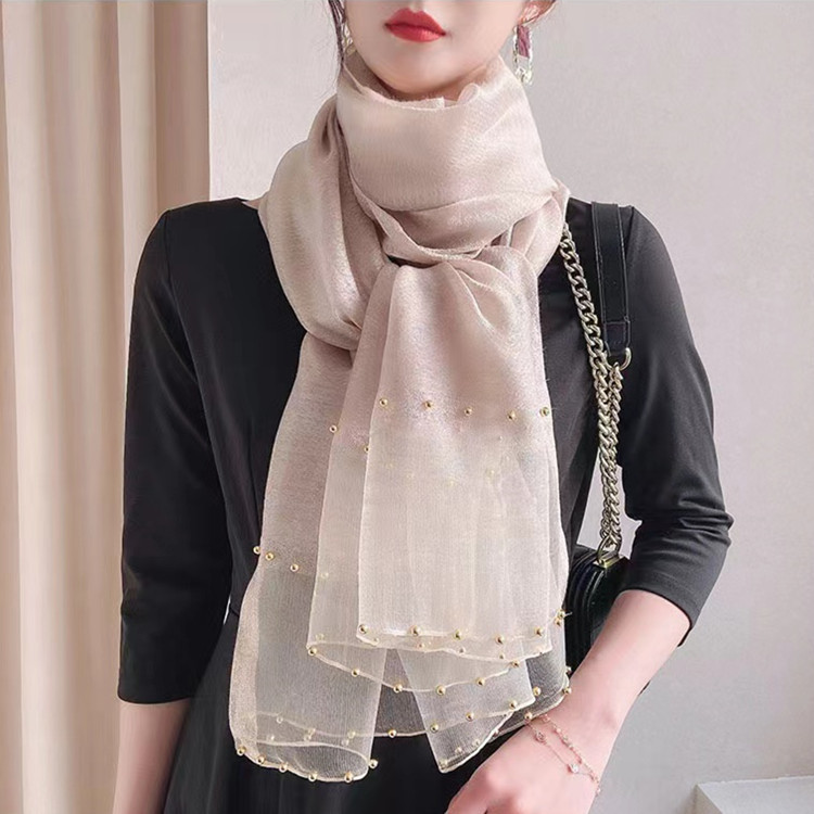 도매 봄과 가을 얇은 우아한 긴 사교계 목도리 실크 프놈펜 구슬 한국 패션 조커 스카프