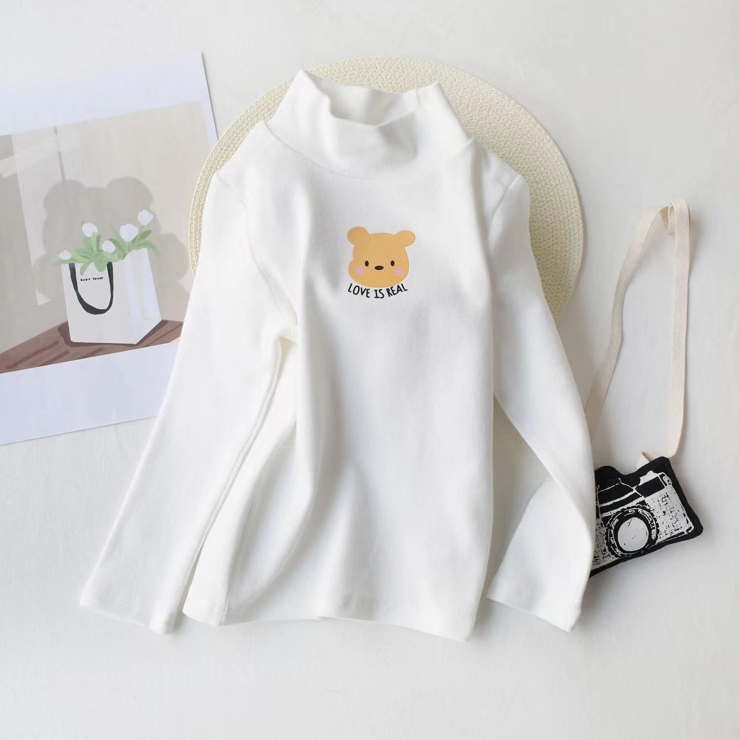 봄과 가을 새 아동복 아동용 긴팔 탑 한국식 벨벳 아동용 티셔츠 3-8 세 아동용 스트레치 베이스 셔츠스토어 가기