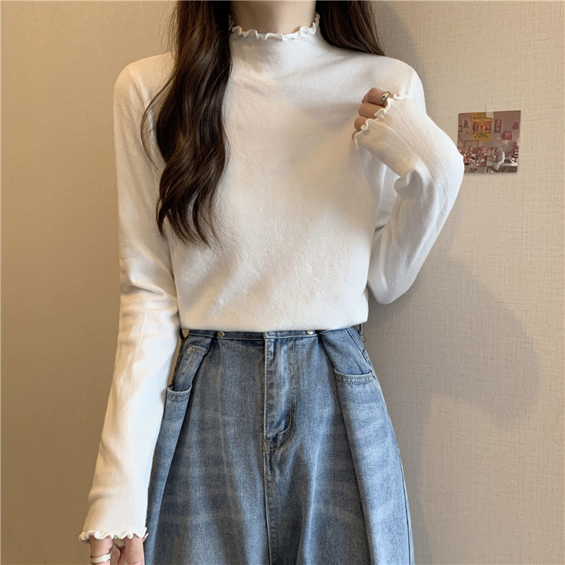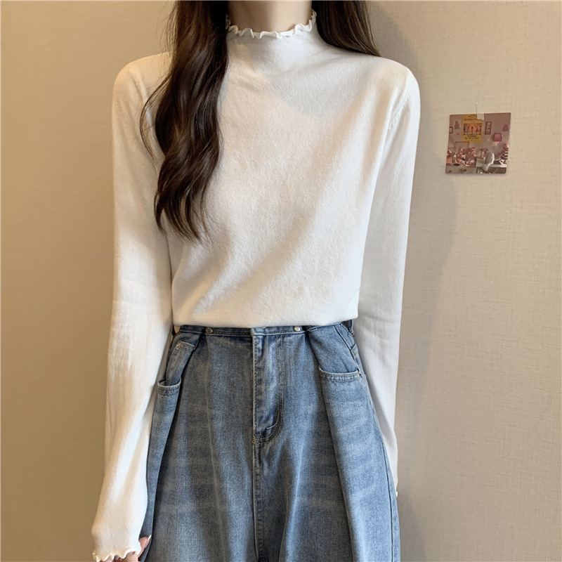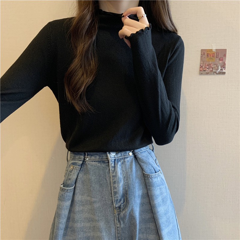 2025년 가을 신상 한국 스타일 반하이넥 러플 니트 이너웨어 학생용 여성 상의 도매 인스타 트렌드